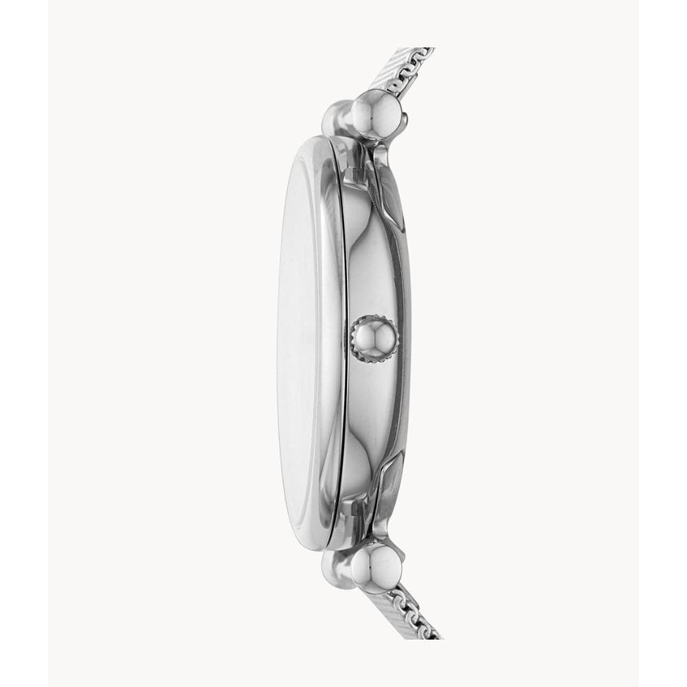 Meet our leading lady of style—Carlie combines rich materials and elegant design to create one glamorous accessory. This 35mm Carlie features a satin silver dial with gold-tone Roman numerals, glitz bezel, three-hand movement and terracotta leather strap.
