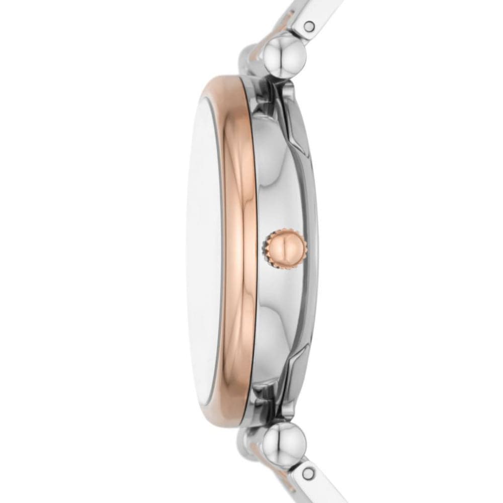 Fossil Carlie ES5156 is an incredible eye-catching Ladies watch. Material of the case is Stainless Steel while the dial color is Silver. In regards to the water resistance, the watch has got a resistance up to 50 meters. It means it can be submerged in water for periods, so can be used for swimming and fishing. It is not recommended for high impact water sports. We ship it with an original box and a guarantee from the manufacturer.