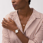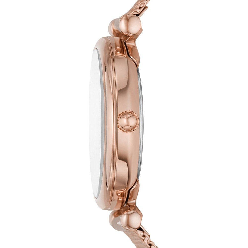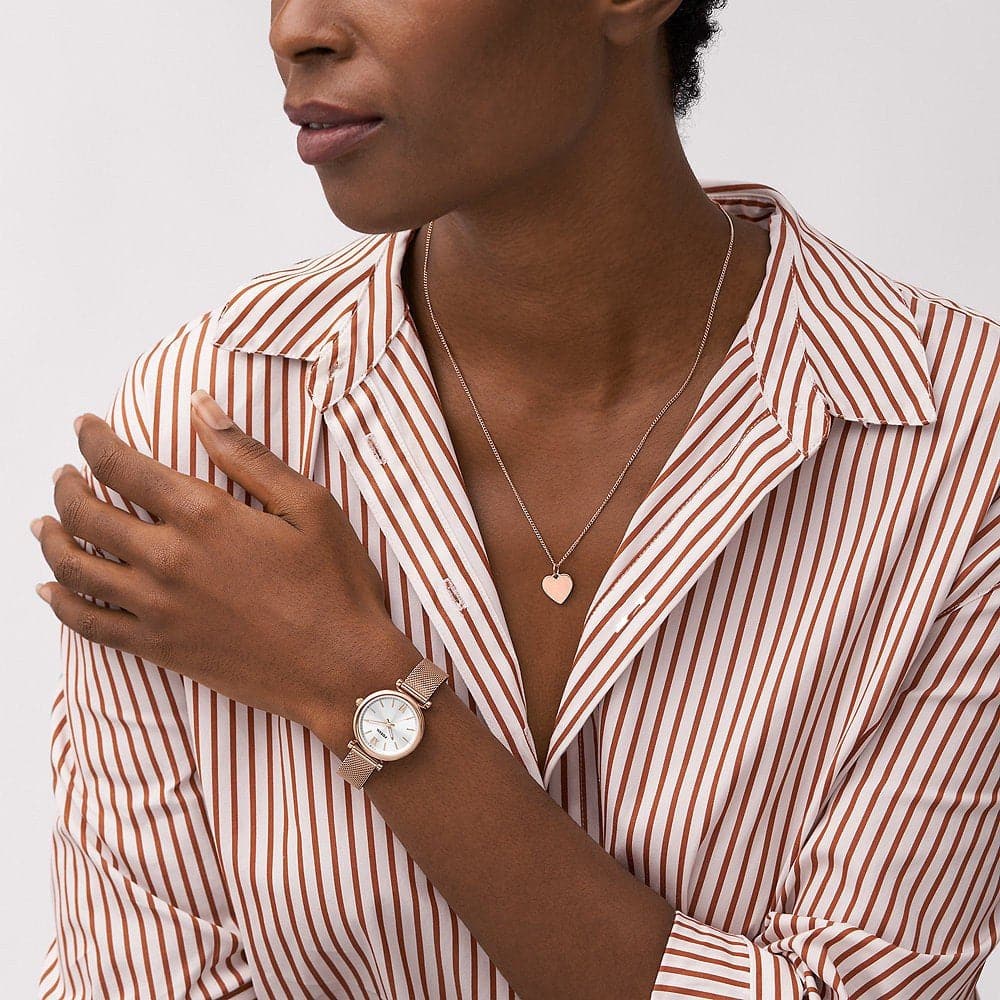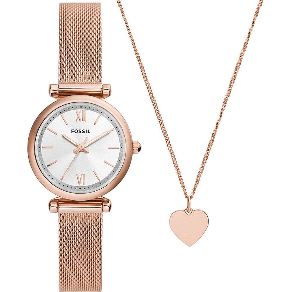 This set features a 28mm Carlie three-hand watch and a rose gold-tone stainless steel chain necklace.