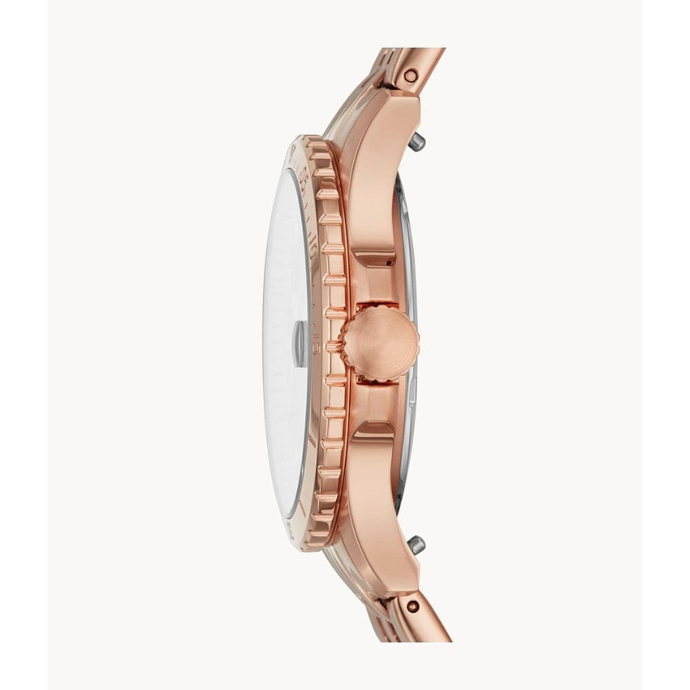 This Fossil FB-01 Quartz Women's Watch effectively combines functionality with classic aesthetics laid in a modern-day style. It’s a must-have for many other different reasons; two among them being durability and a secure, comfortable fit. The watch is accurate to a plus/minus few seconds a day and its low power requirements make it run for years on every single battery.