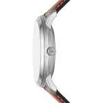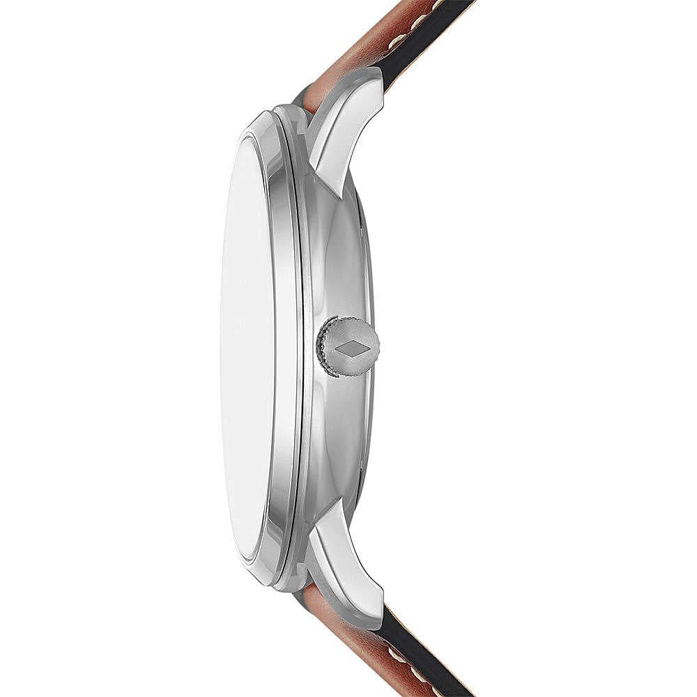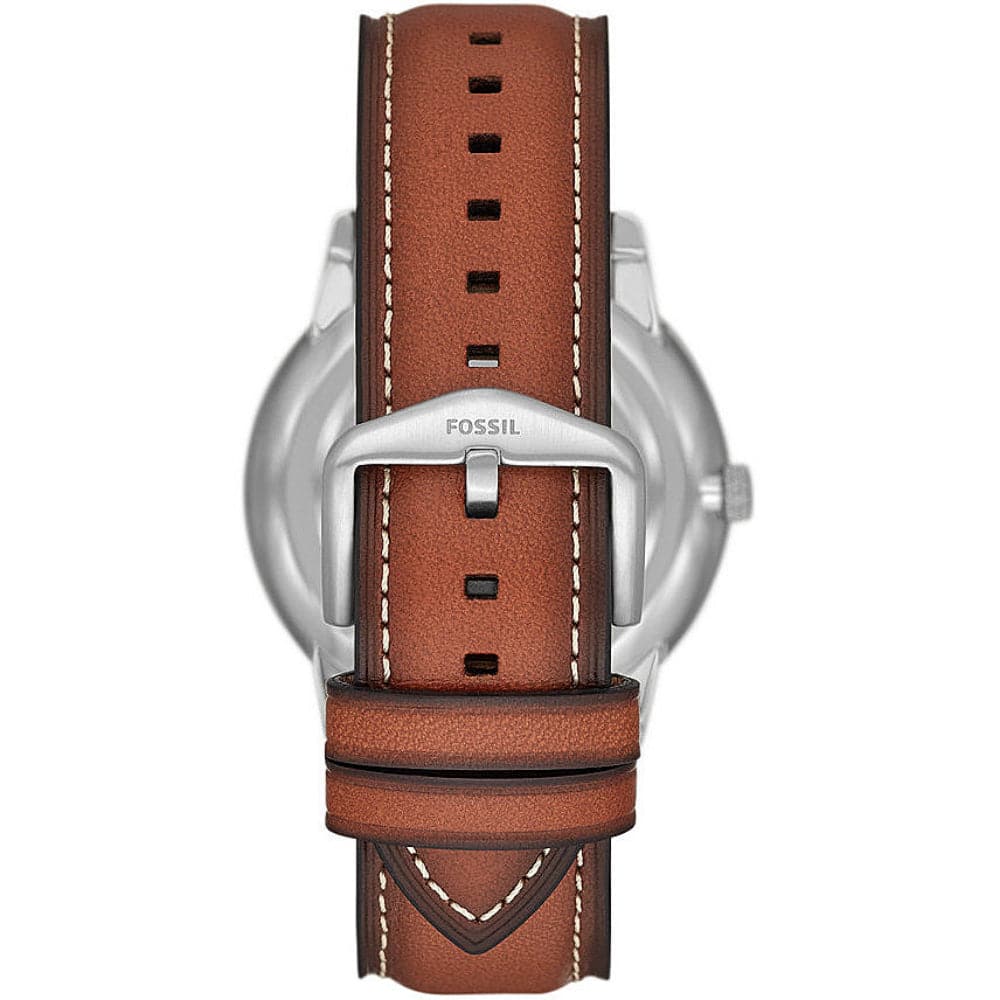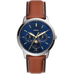 Fossil Men's Multifunction Watch From the Neutra Minimalist Collection. Clock With Round Case Of 42 Mm Made Of Stainless Steel Of Silver Color, With Mixed Finish. The thickness is 10 mm. The glass is transparent. The dial is blue. The bezel is in stainless steel, silver color with satin finish. The Distance Of The Anse Is 22 Mm. The strap is in Pro-Planet Brown leather with a shiny finish. The Closure Is: Pin Buckle. The Resistance to Water is 5 Atm. The Movement Is Quartz / Multifunction. The 42mm Neutra Minimalist Watch Features A Blue Sunburst Dial, Multifunction Movement And Brown Leather Strap.