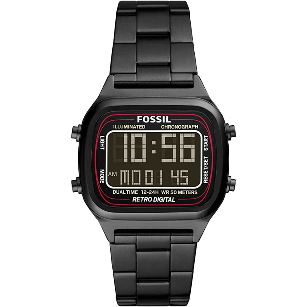 FOSSIL RETRO DIGITAL FS5845 BLACK STAINESS STEEL MEN WATCH