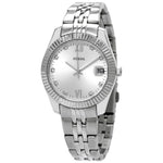 Meet our leading lady of style—Carlie combines rich materials and elegant design to create one glamorous accessory. This 35mm Carlie features a satin silver dial with gold-tone Roman numerals, glitz bezel, three-hand movement and terracotta leather strap.