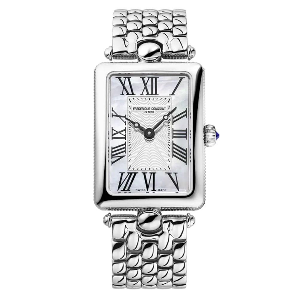 The quintessential definition of refined time. The Classics Art Déco Carrée, with its elegant rectangular polished shaped case and fluted case bands offers the ultimate elegance by bringing timeless sophistication among Frederique Constant’s collection. Inspired by the sophisticated and fashionable women of the late 1920s, this design cuts off from the mainstream and presents a different, vintage style.