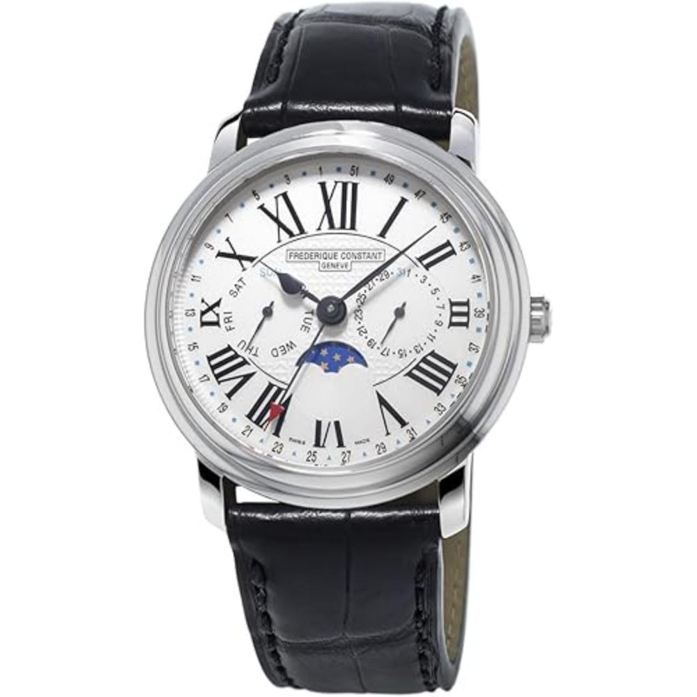 The Frederique Constant Classics Business Timer FC-270M4P6 is an incredible Swiss Made quartz watch with a moonphase complication, day hand, date hand and a hand for the week. An incredible watch that offers a lot of class around your wrist.