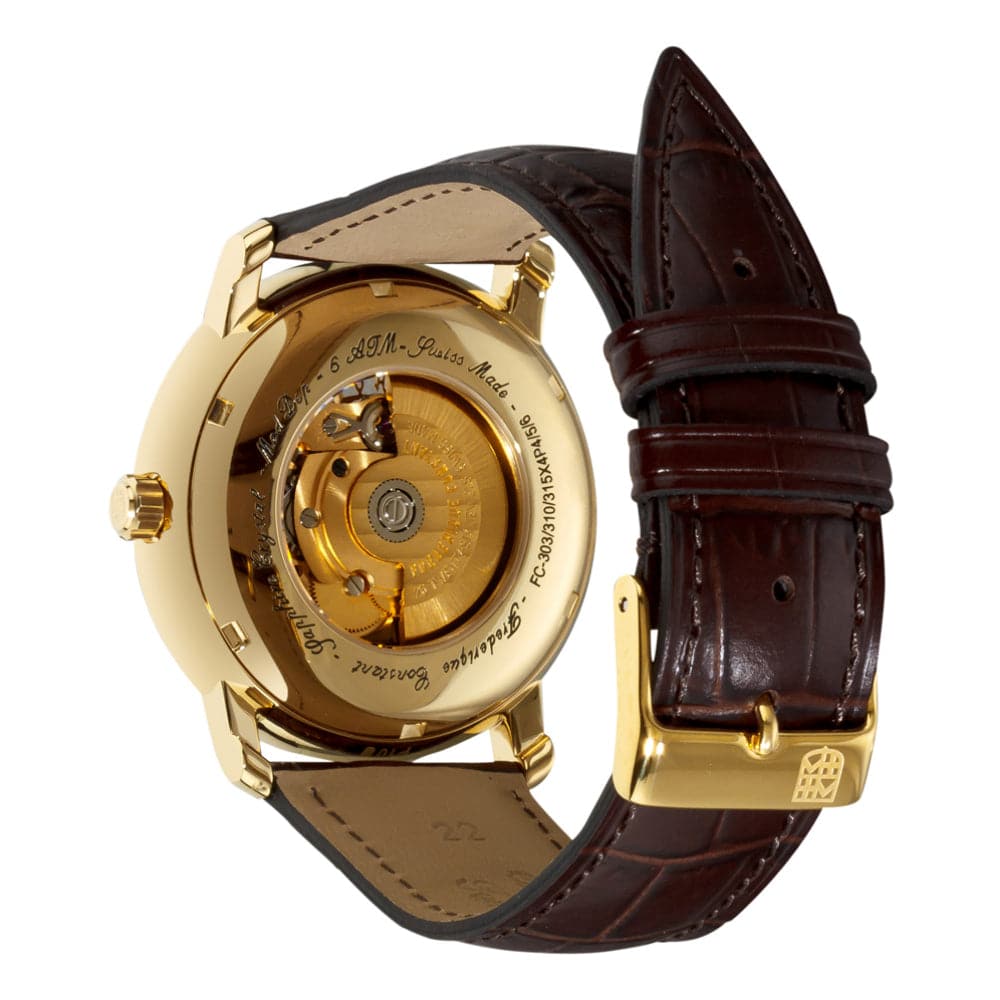 Frederique Constant is a Swiss watchmaking manufacture located in Geneva, Switzerland. The intricate decorative work is done by hand, including detailed engravings, the application of the circular Côtes de Genève pattern, perlage and rhodiage. The watch is unique. Every time the owner of a Frederique Constant watch looks at their timepiece, they are bound to feel joy and every visible component of each watch produced is beautifully decorated.