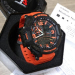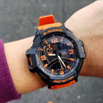 These new additions to the GRAVITYMASTER lineup are equipped with digital compass capabilities, creating a watch that is perfectly matched to the needs of the modern aviator, both in terms of function and appearance. Pressing the 9 o'clock button in any mode immediately goes to the Digital Compass Mode, while the button at 8 o'clock returns to the mode you were in before the Digital Compass Mode.