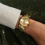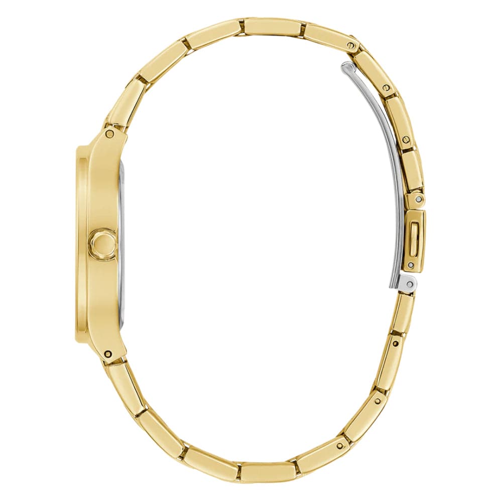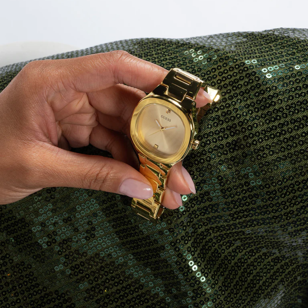Bring the look of luxury with this elegant timepiece that features a NEW rounded square case with a genuine diamond marker at the 12 o'clock hour.