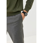 Stainless steel case, Rubber strap, Black dial, Quartz movement, Scratch resistant mineral, Water resistant up 5 ATM - 50 meters - 165 feet.