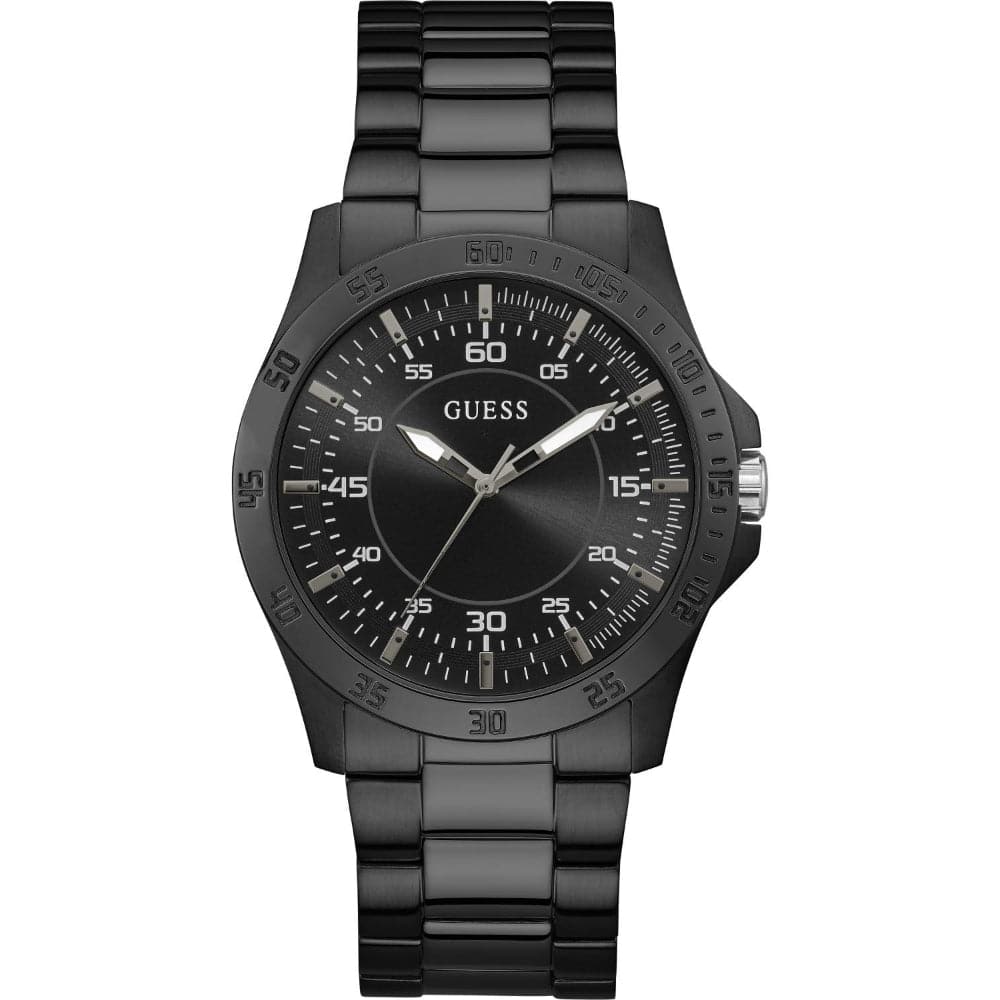 This men's analog watch from Guess is a must-have timepiece that merges functionality with modern style. The black round dial features plain three hands functional on a quartz movement and a crown for time adjustment. The stainless steel strap showcases a stunning black hue that uplifts the look of the watch. Besides, it is completed with a push-button clasp to ensure a secure fit on the wrist.