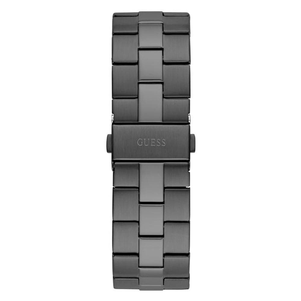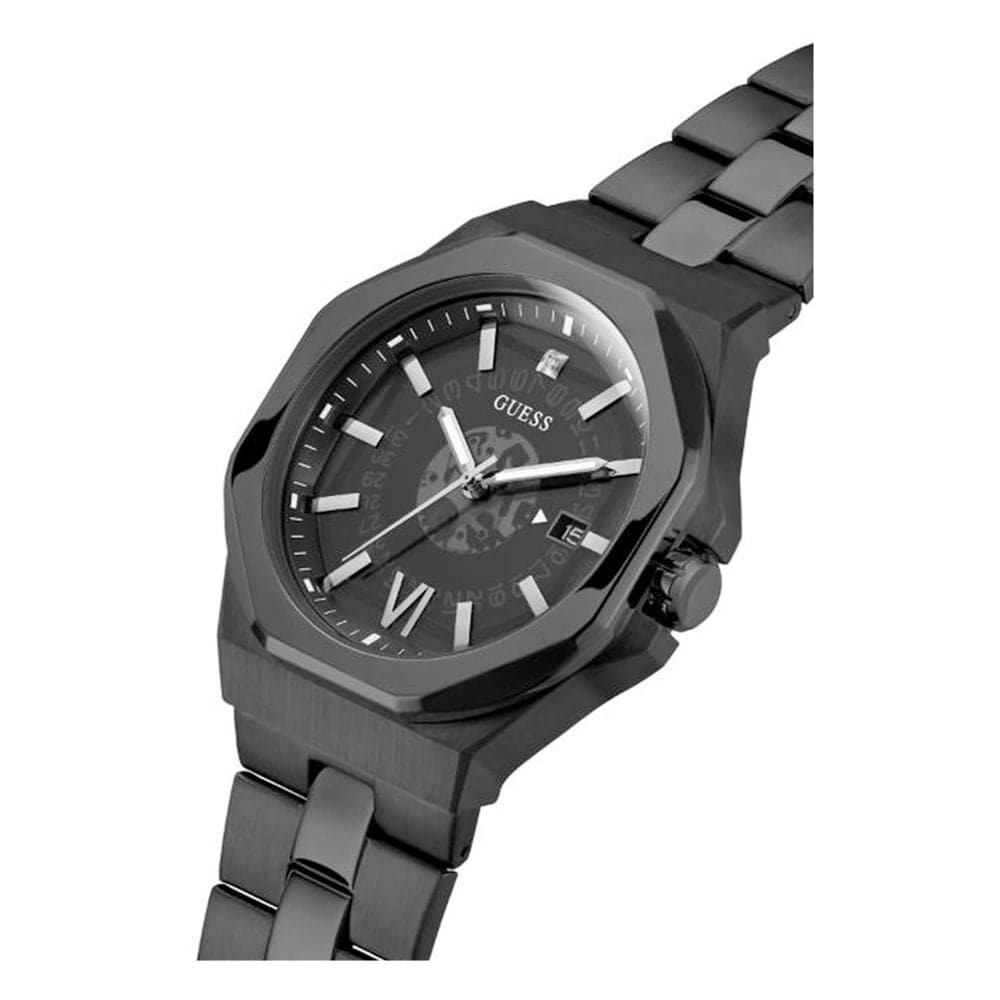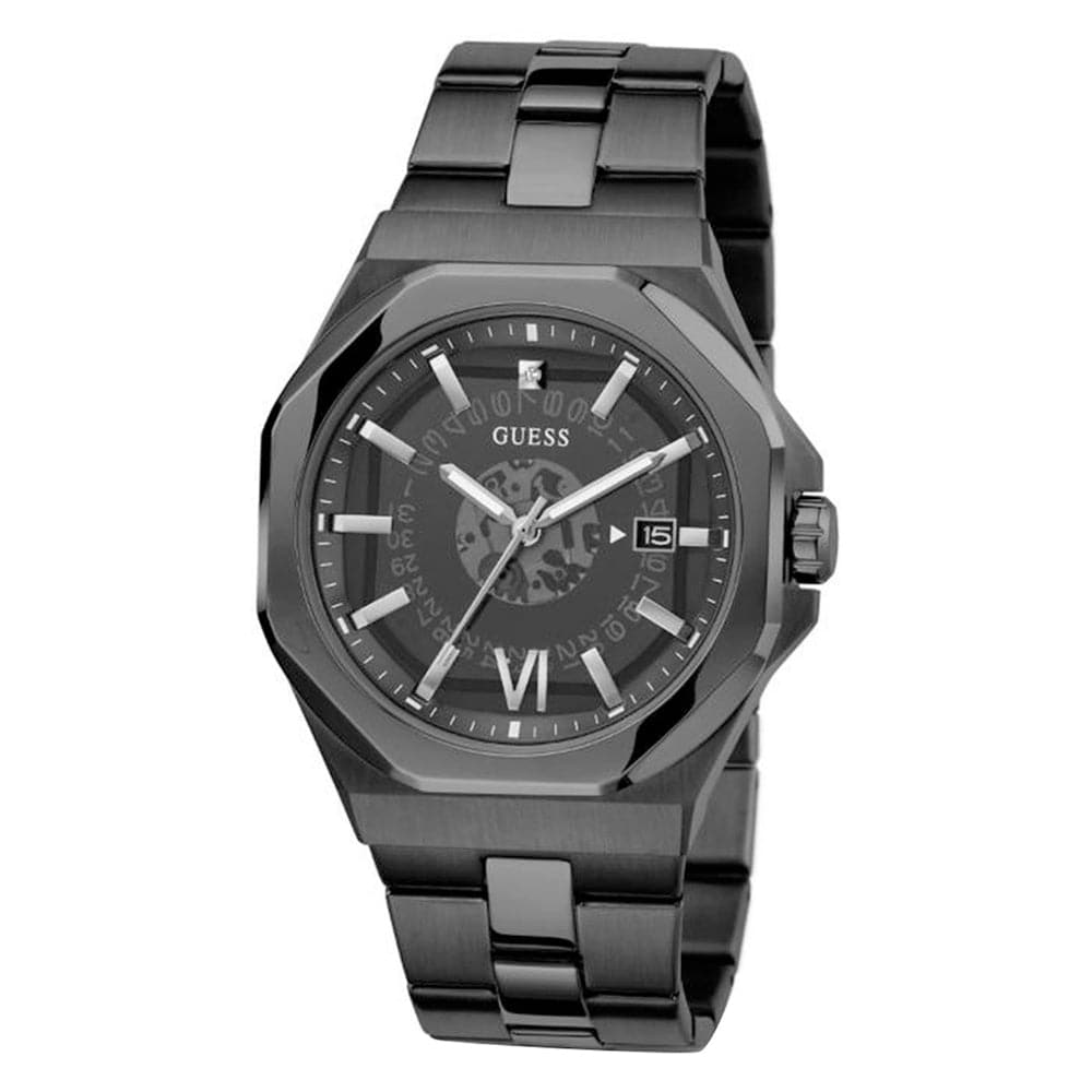 This men's analog watch from the Emperor collection by GUESS merges performance with modern-day styling and will surely boost up your style quotient. Its stainless steel bracelet exudes a black hue that accentuates the look of the watch. Nestled in a 41.5 mm case, the black round dial is stunning to look at. It showcases plain three hands and a crown for time adjustment. Moreover, it is fitted with a push-button clasp to ensure a secure fit on the wrist.