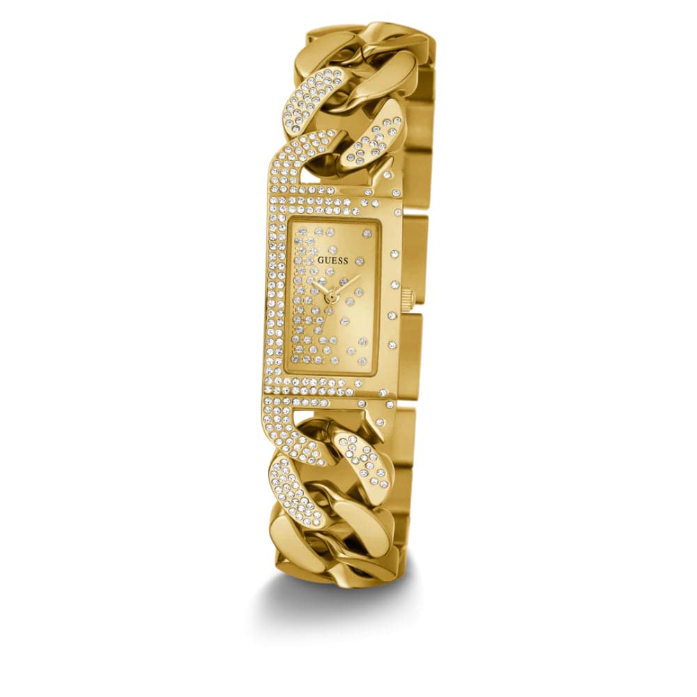 A stand alone piece or one that can be layered with your favorite jewelry; this stunning chain watch features cascading crystals from its dial to bracelet. The chain bracelet also features self-adjustable links for the perfect fit.