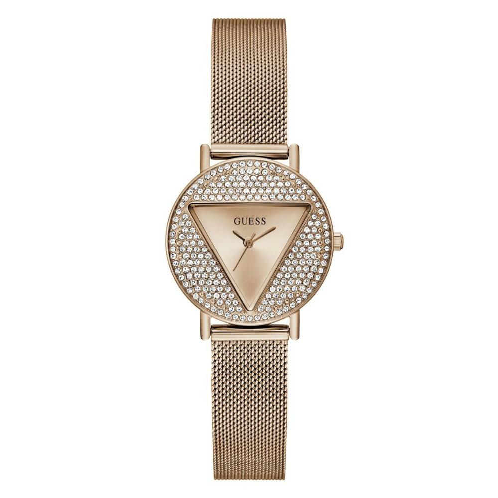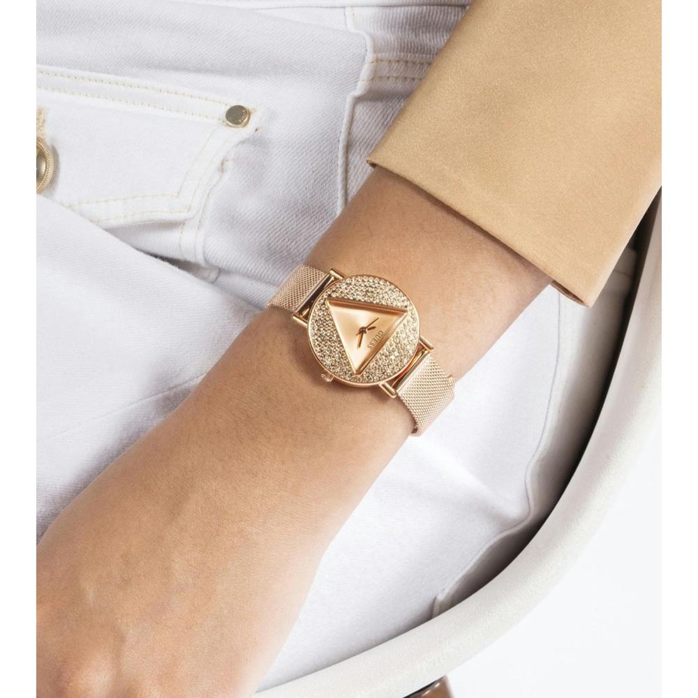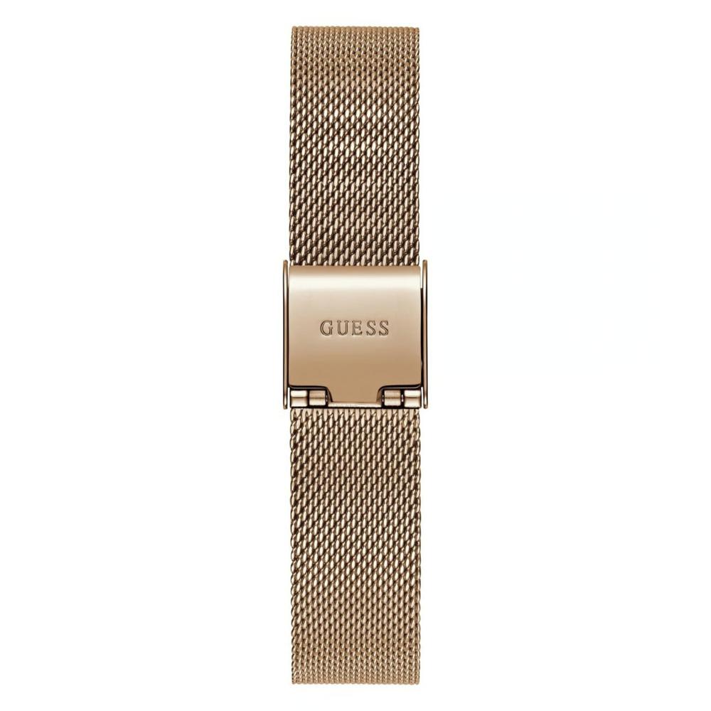A must-have timepiece for all the watch aficionados, this women's analog watch from the collection by GUESS will be a perfect pick. The rose rose gold round dial is protected by a mineral glass. It features and a crown for time adjustment. The stainless steel strap comes in a rose gold hue that further elevates the look of the timekeeper. Besides, it is completed with a hook buckle clasp to ensure a secure fit on the wrist.