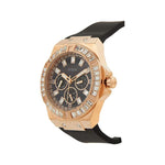 Bling it on with this stunning timepiece! Boasting baguette crystals on the gold-tone case and black multi-function dial, this silhouette features a comfortable black silicone strap.