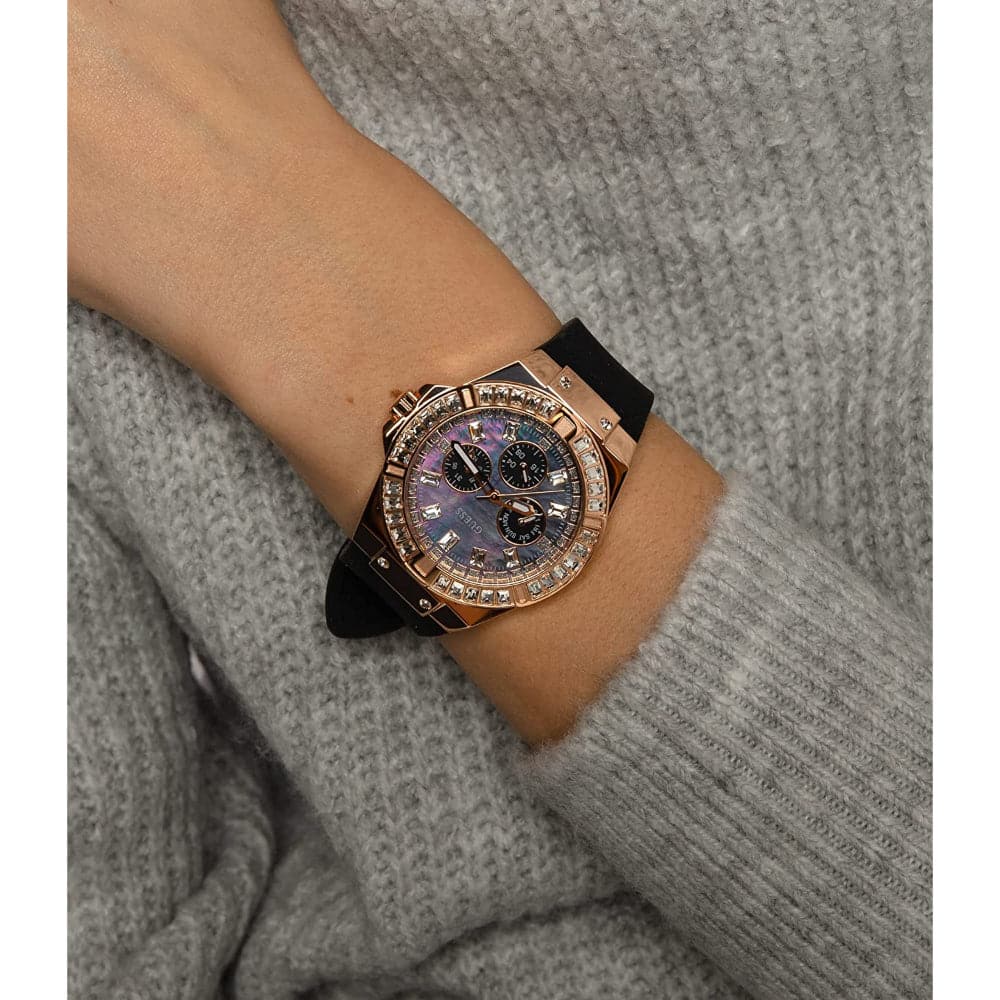 GUESS GW0118L2 ROSE GOLD TONE CASE BLACK SILICONE WOMEN'S WATCH