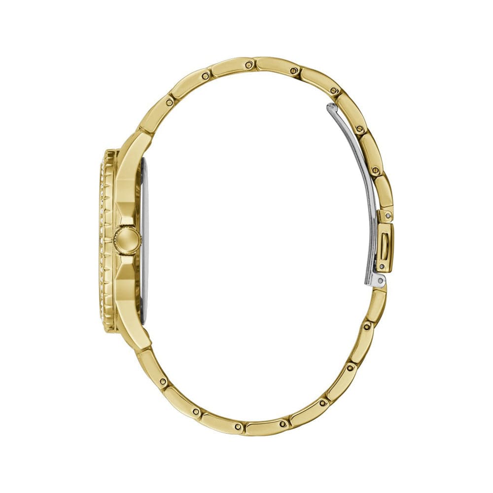 You'll never dull your sparkle with all this glitz! This style boasts crystals on both the case and lugs of the bracelet with a fully glitz powder dial.