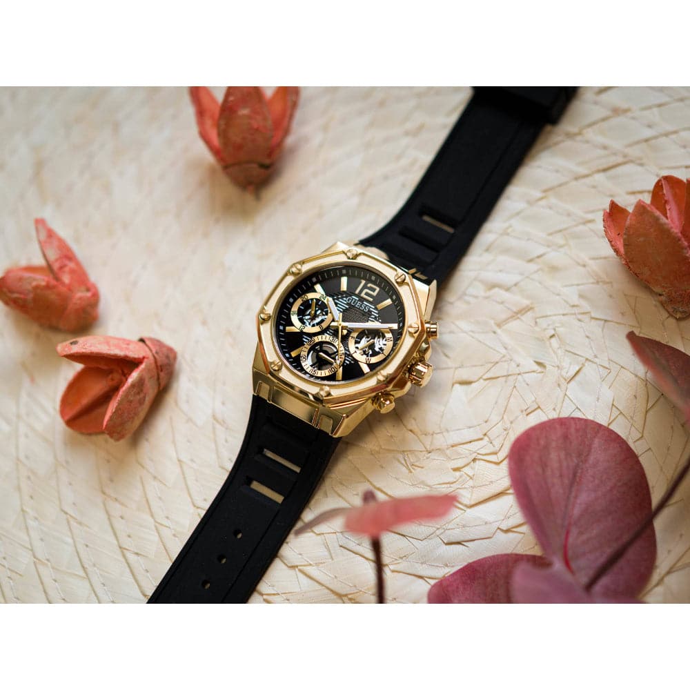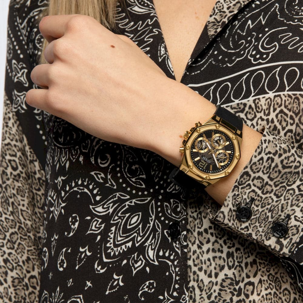 GUESS GW0256L1 GOLD TONE CASE BLACK SILICONE WOMEN'S WATCH