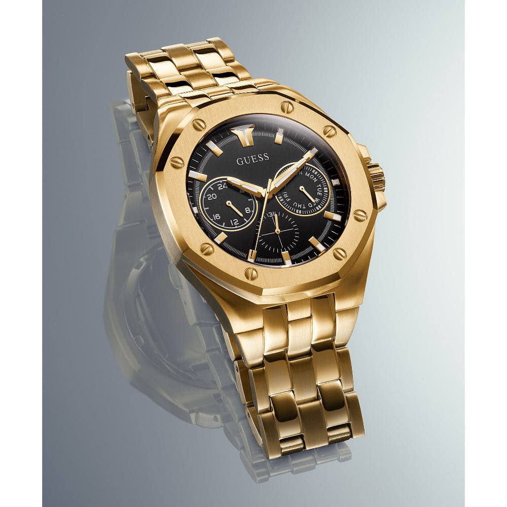 Guess Top Gun GW0278G2 is a functional and attractive Gents watch. Case material is Stainless Steel and the Black dial gives the watch that unique look. In regards to the water resistance, the watch has got a resistance up to 50 meters. It means it can be submerged in water for periods, so can be used for swimming and fishing. It is not recommended for high impact water sports. We ship it with an original box and a guarantee from the manufacturer.