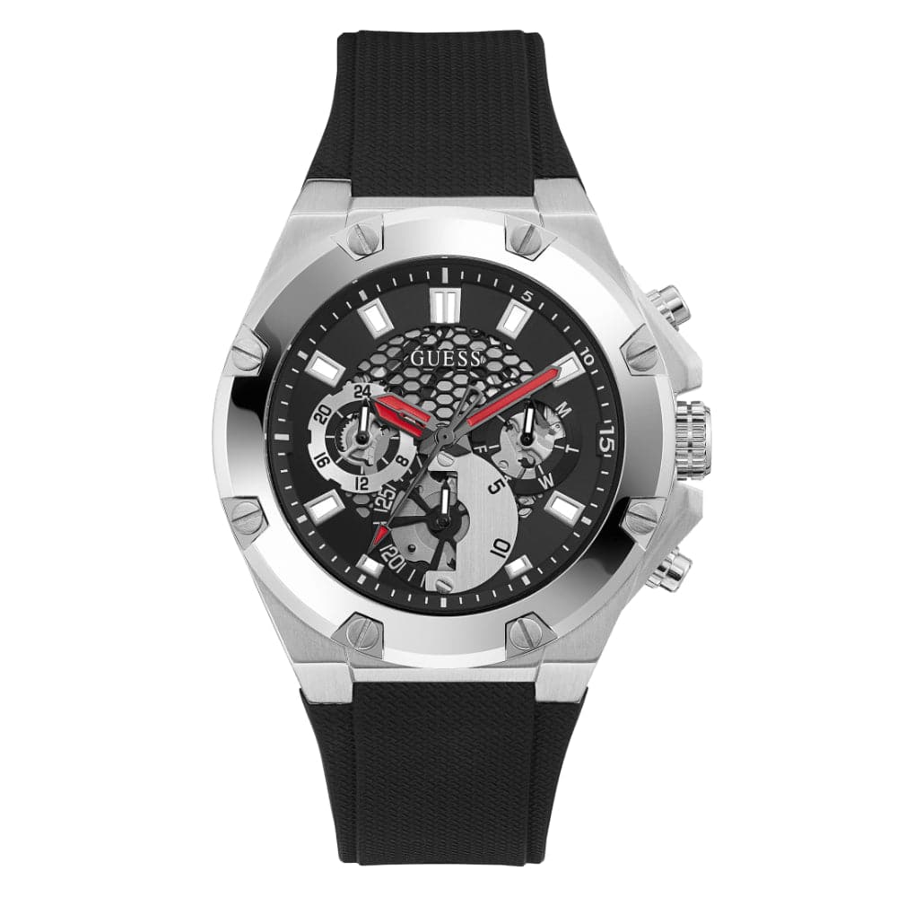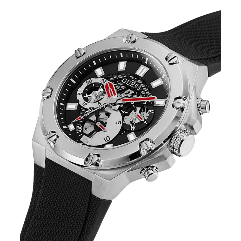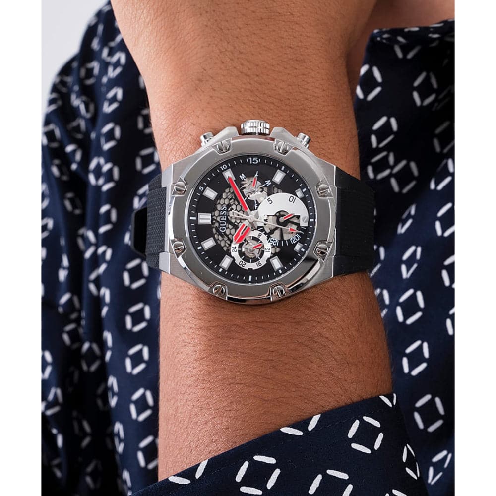 Guess Third Gear GW0334G1 is an amazing and very impressive Gents watch. Case material is Stainless Steel and the Black dial gives the watch that unique look. In regards to the water resistance, the watch has got a resistance up to 30 meters. It means it can be worn in scenarios where it is likely to be splashed but not immersed in water. It can be worn while washing your hands and will be fine in rain. The watch is shipped with an original box and a guarantee from the manufacturer.