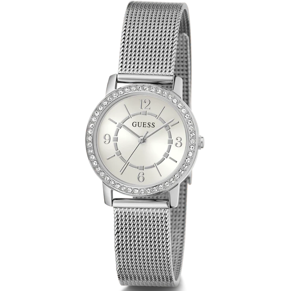 Dress this pretty and petite style up or down, its glitz details are the perfect hint of elegance but can still be worn with everyday looks and is paired with a sleek self-adjustable mesh bracelet.