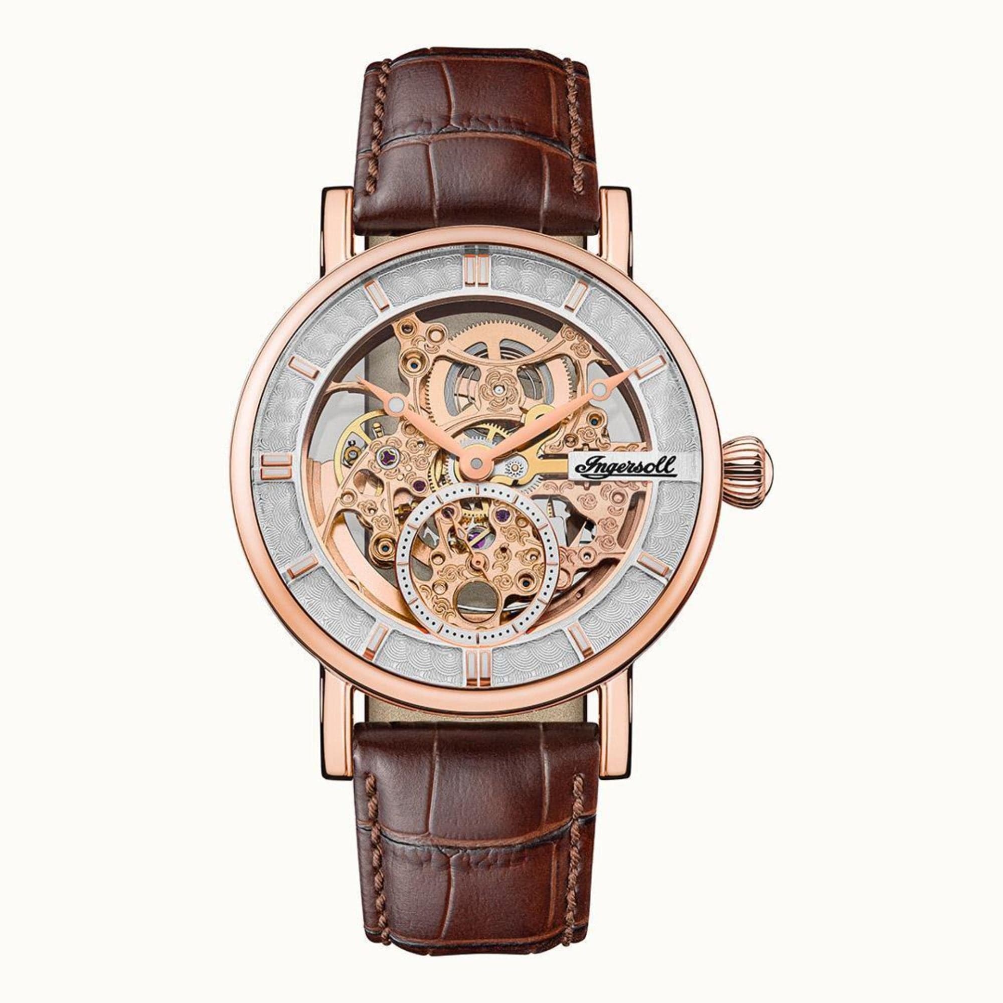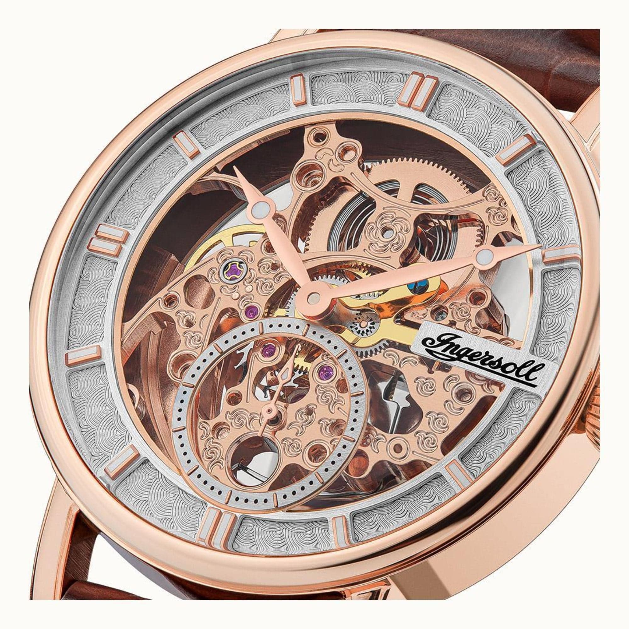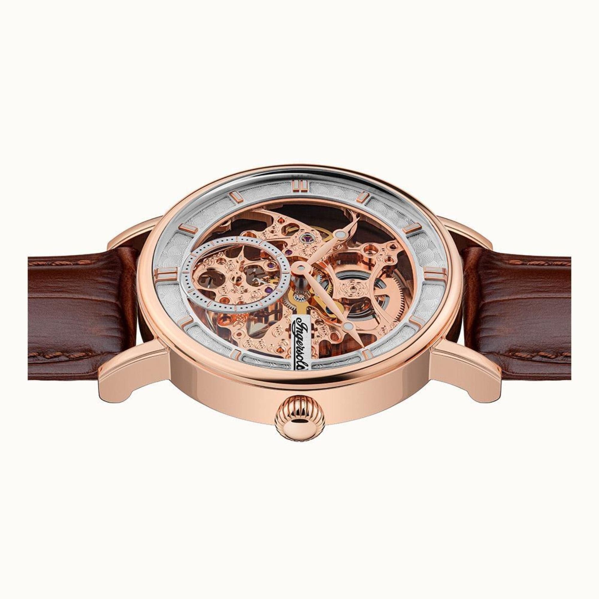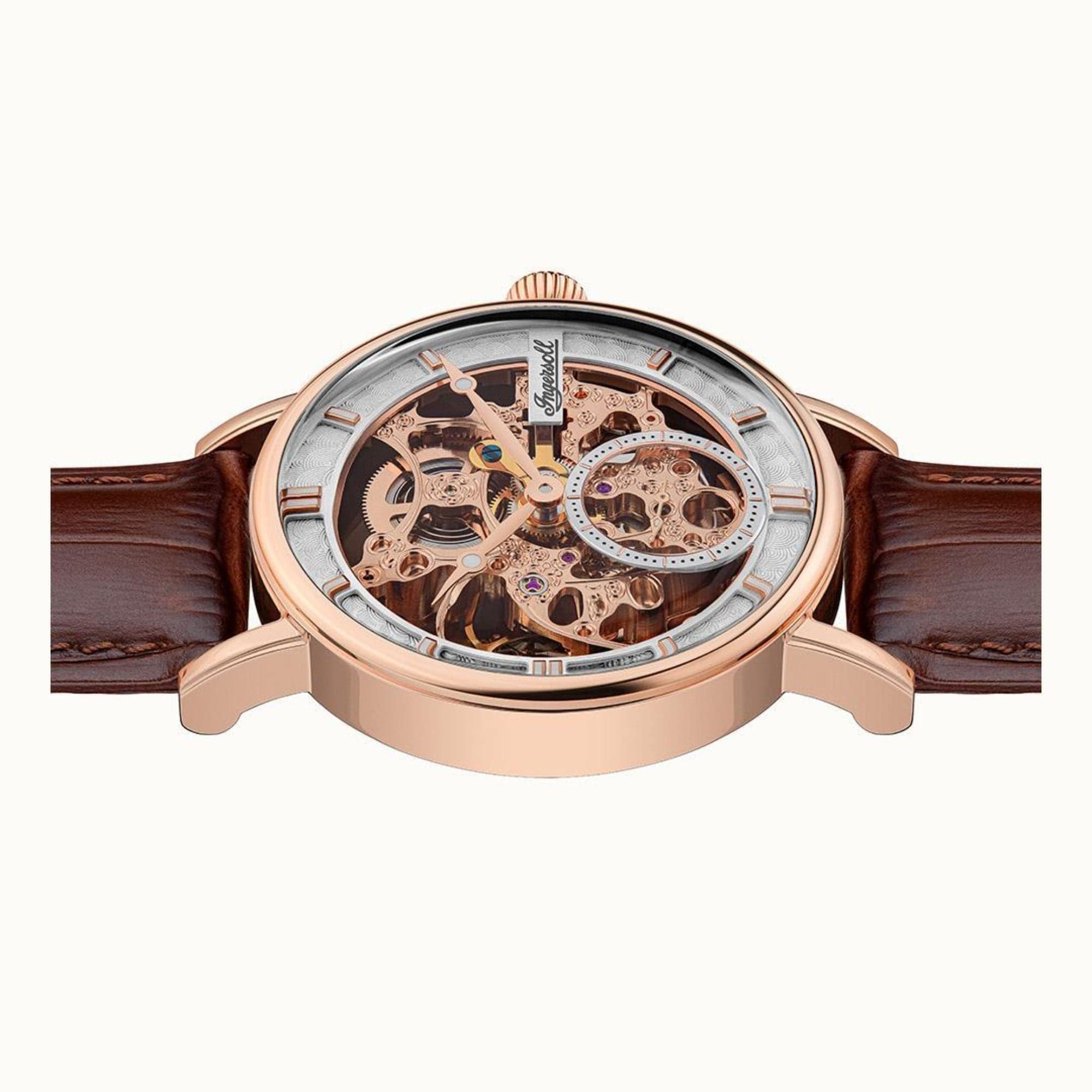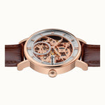 The Herald I00401B watch is an exquisite timepiece with an enchanting skeletonized movement, finished to the highest standard by a stainless steel rose gold case covered by scratch-resistant mineral glass.