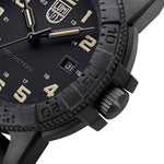 This year, Luminox takes the Sport Timer even further, incorporating an automatic movement into the sporty vintage design. To show off the automatic movement, the Automatic Field Sport Timer has an exhibition case back, with a blacked-out rotor adorned with the Luminox logo.