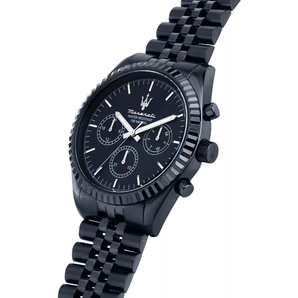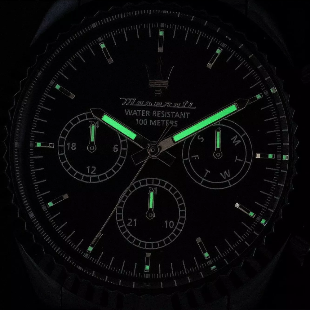 The Maserati Competizione Chronograph R8873600011 men's watch is a unique model that combines sporty style with elegance. Its envelope is made of stainless steel in blue color, which gives it a modern look. The dial of the watch, also in a blue hue, is covered by mineral glass, which protects it from damage. The width of the envelope is 43 mm, which gives the watch a solid character. The bracelet, also made of stainless steel in blue, perfectly harmonizes with the whole, creating a cohesive composition. The watch features a water resistance of up to 100 meters, making it suitable for swimming. It is an ideal choice for men who appreciate style and functionality in one.