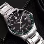 The new Maserati Stile collection plays with clean and well-defined geometry. This watch is characterized by a 44 mm steel case and bezel with exposed Silver screws. The open date perfectly accompanies the Black colored dial, while the strap reflects the steel of the other elements. Screw-down crown and back, Water Resistant 10 ATM.