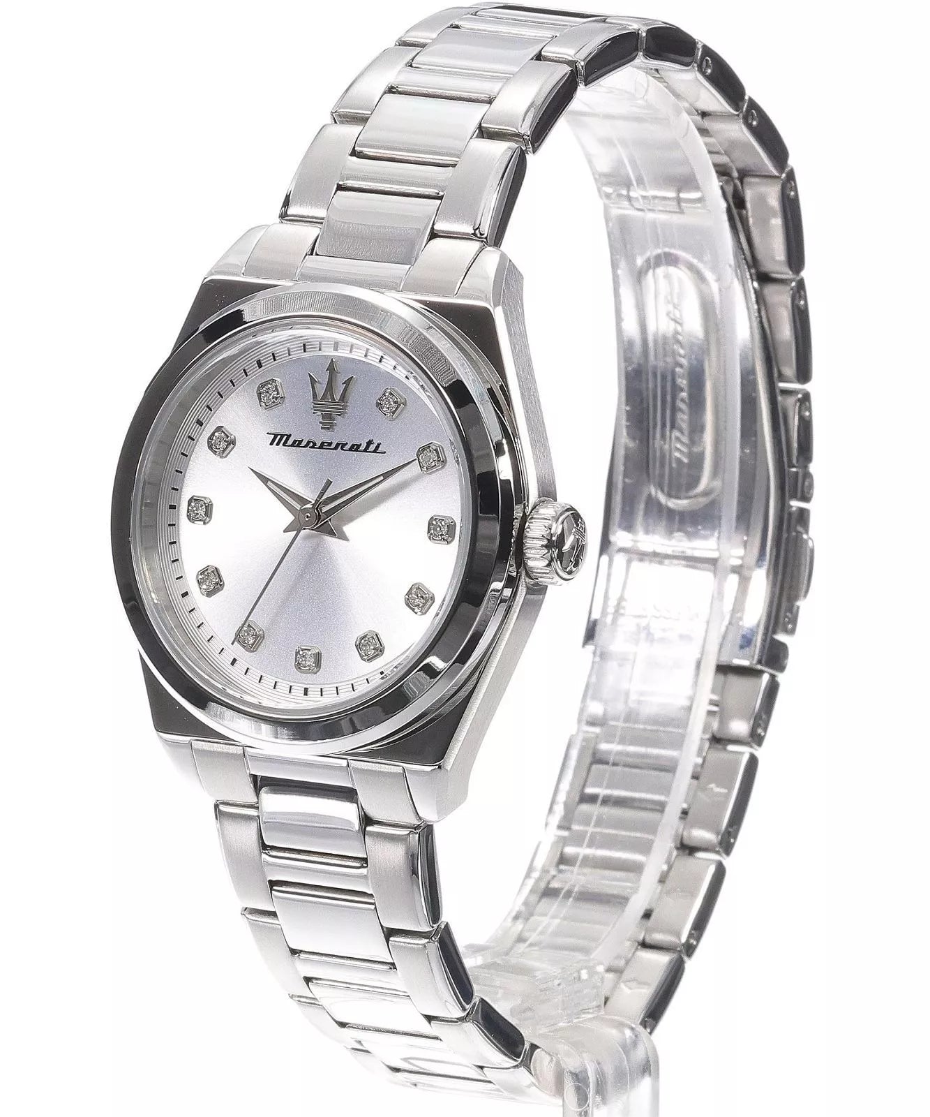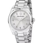 The Maserati Velocitá R8853152503 women's watch combines modern design with high quality workmanship. It has a silver-colored envelope made of stainless steel with a width of 35 mm, which gives it a solid look. The silver-colored dial of the watch is covered by mineral glass, which protects it from damage. The bracelet, also made of stainless steel in a silver tone, perfectly harmonizes with the whole, creating a harmonious composition. The watch features a water resistance of up to 50 meters, which makes it resistant to minor splashes. It is an excellent choice for women who appreciate style and functionality in everyday use.