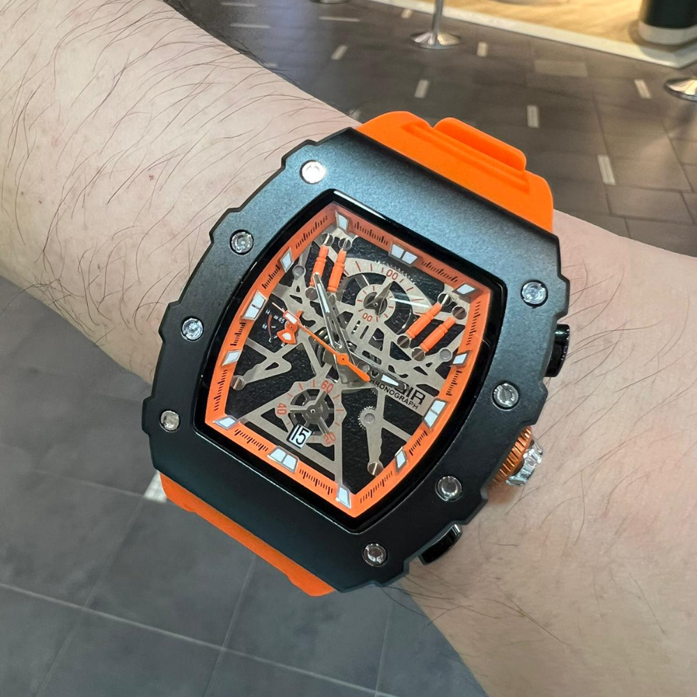 Megir Skeleton Dial Orange Silicone Strap Men Watch MN2218G-BKOR-1N11
