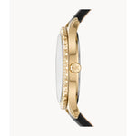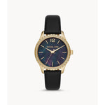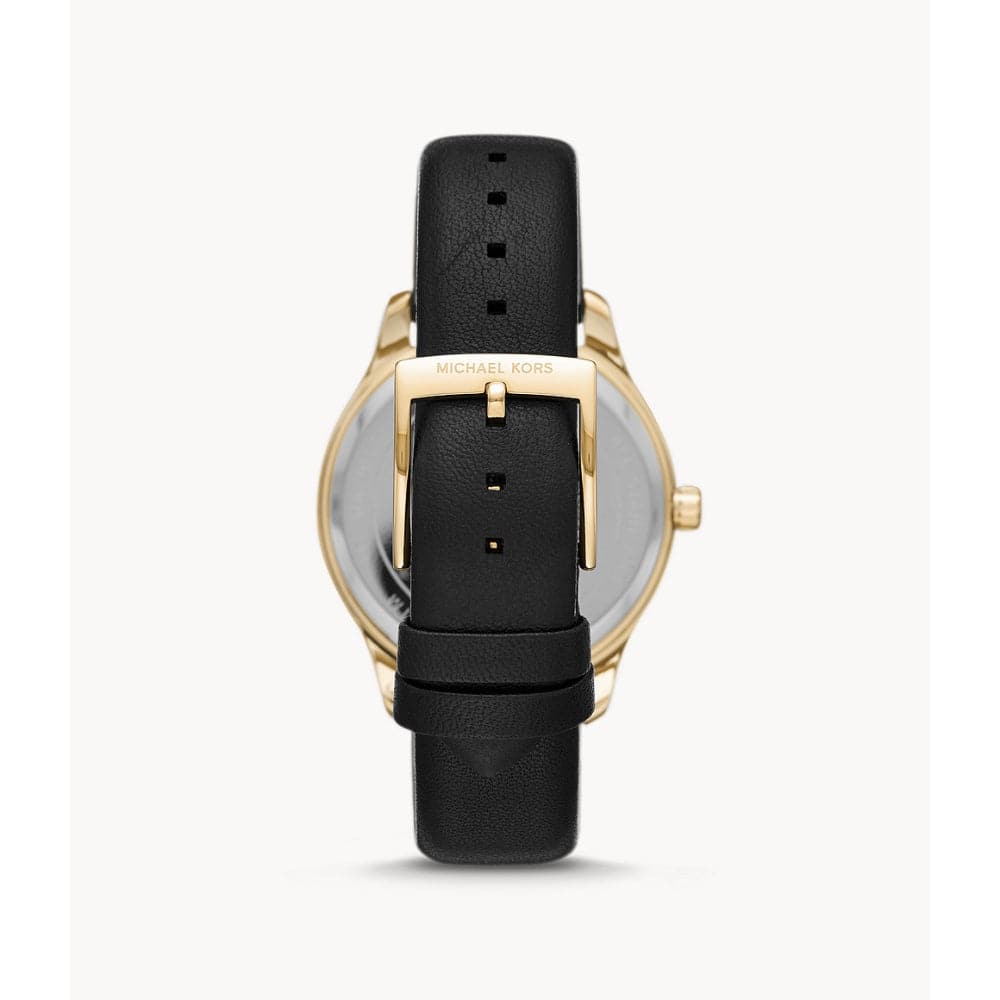A Michael Kors chronograph watch in silver-tone stainless steel has a polished look and a striking shine. Roman numerals and a date wheel accent the dial, which is outlined by a textured bezel. Hinged-snap clasp.