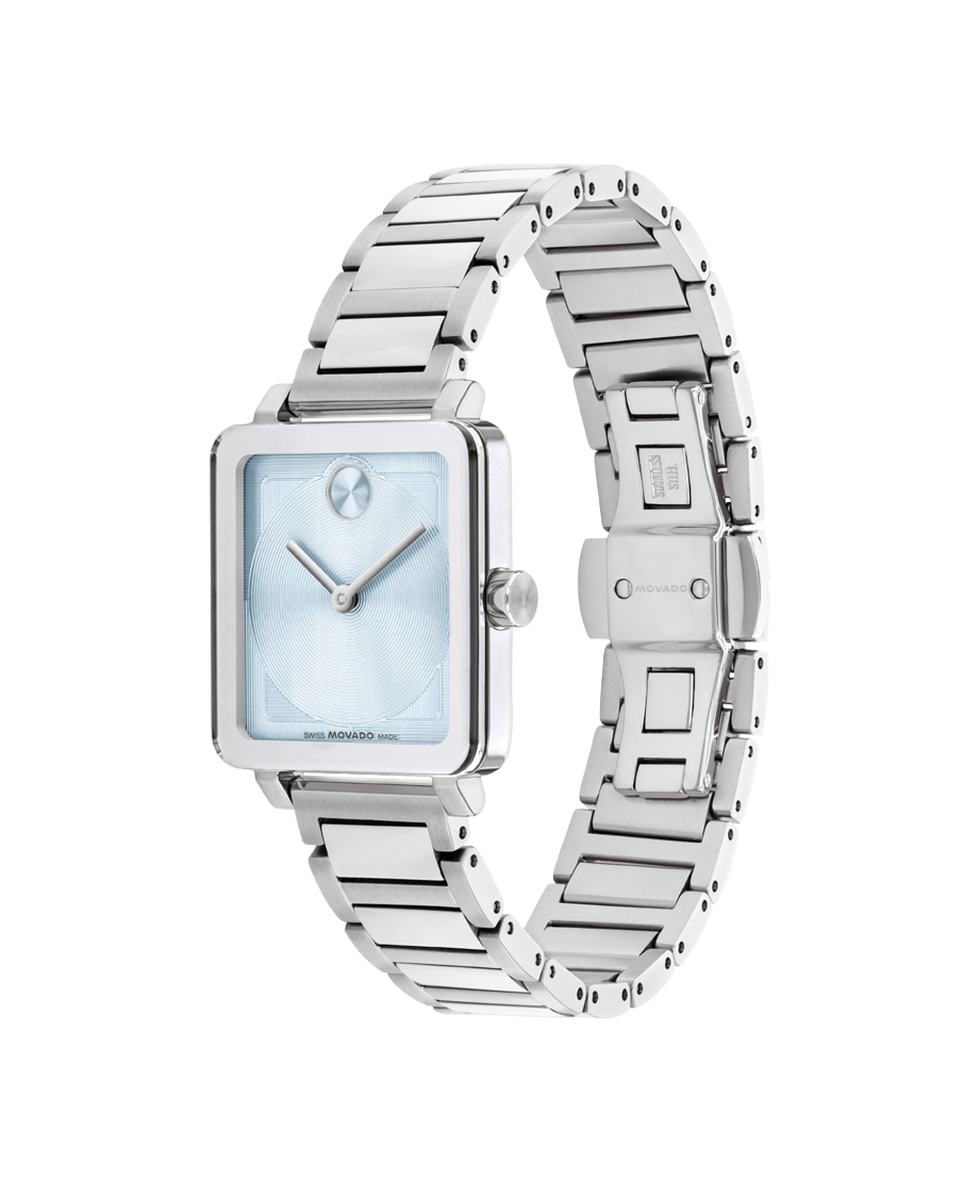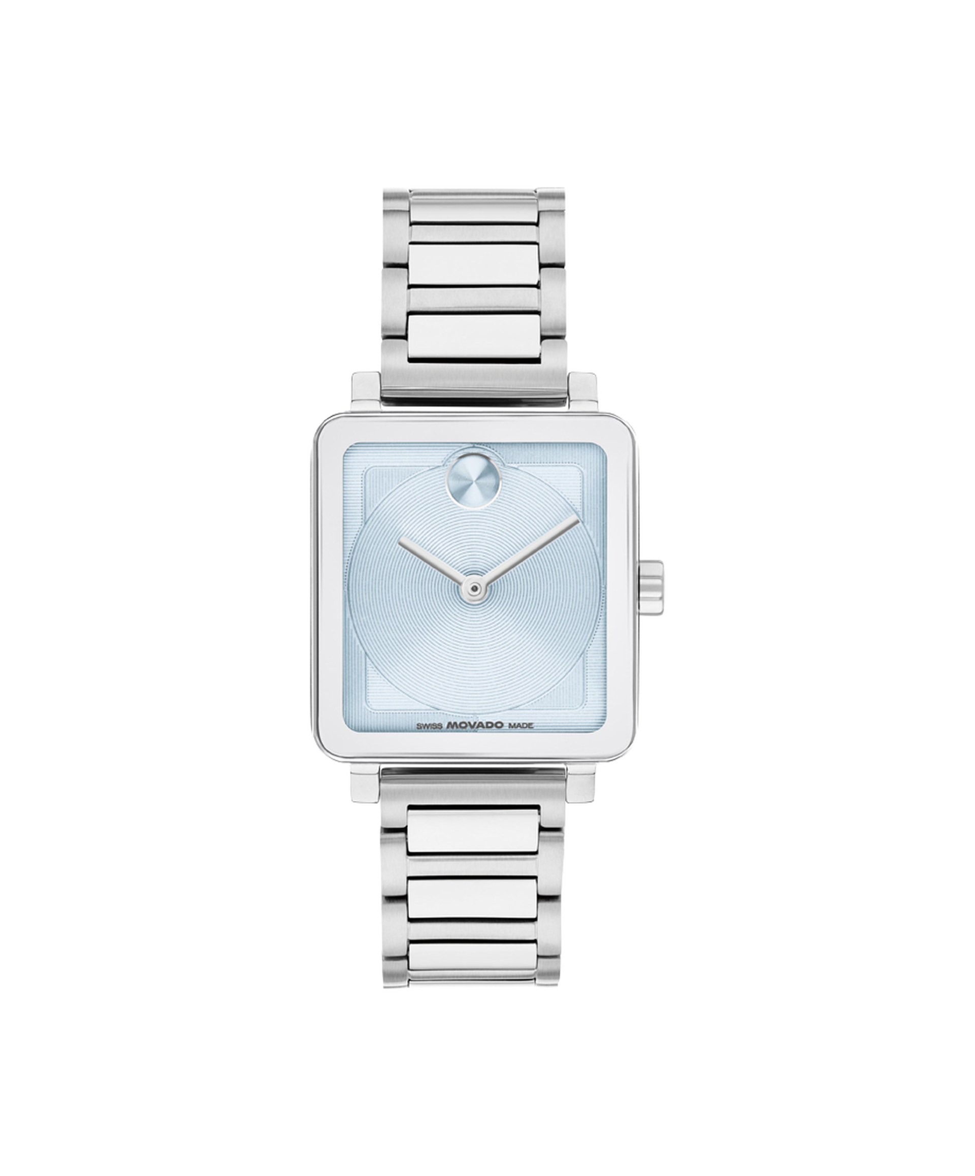 The Movado Bold Evolution 2.0 (3601164) is a sleek and modern timepiece with a distinct square design that exudes sophistication and elegance. Featuring a light blue lacquer dial with a dimensional micro-textured finish, this watch is both bold and refined. The signature Movado dot at 12 o’clock and slim steel hands enhance its minimalist charm, while the stainless steel link bracelet adds a touch of contemporary luxury.