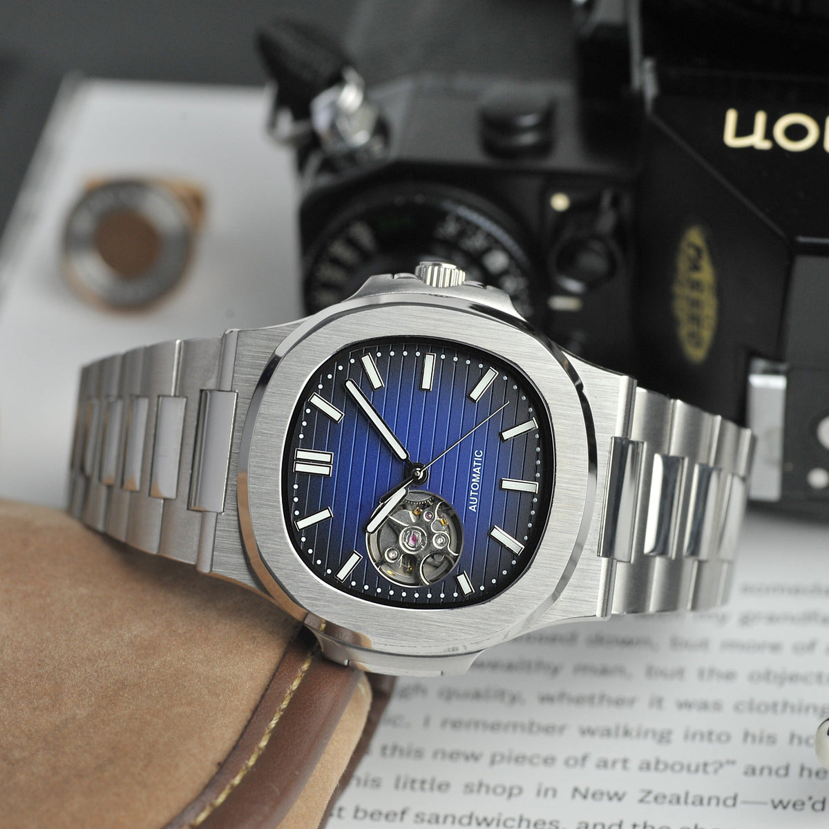 Introducing our new custom watch, a timeless blend of elegance and modern functionality inspired by the classic Nautilus design. Crafted with meticulous attention to detail, this masterpiece is available in two exceptional movement options: the NH35A automatic movement with a date function, and the NH38 movement featuring a stunning openheart design on the dial.