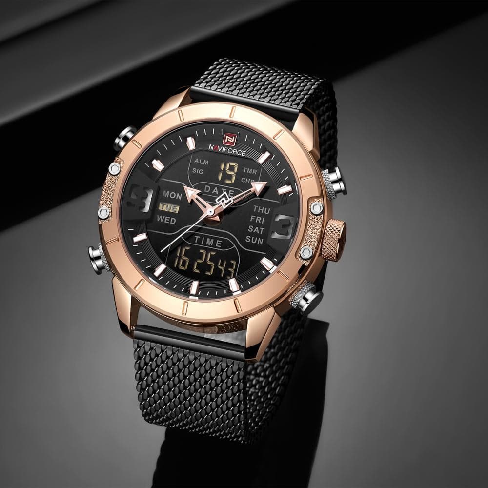 Naviforce Digital Black Dial And Milanese Strap Men Watch NF9153 RG/B