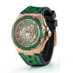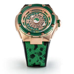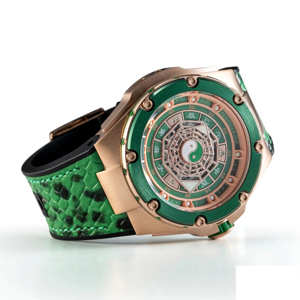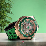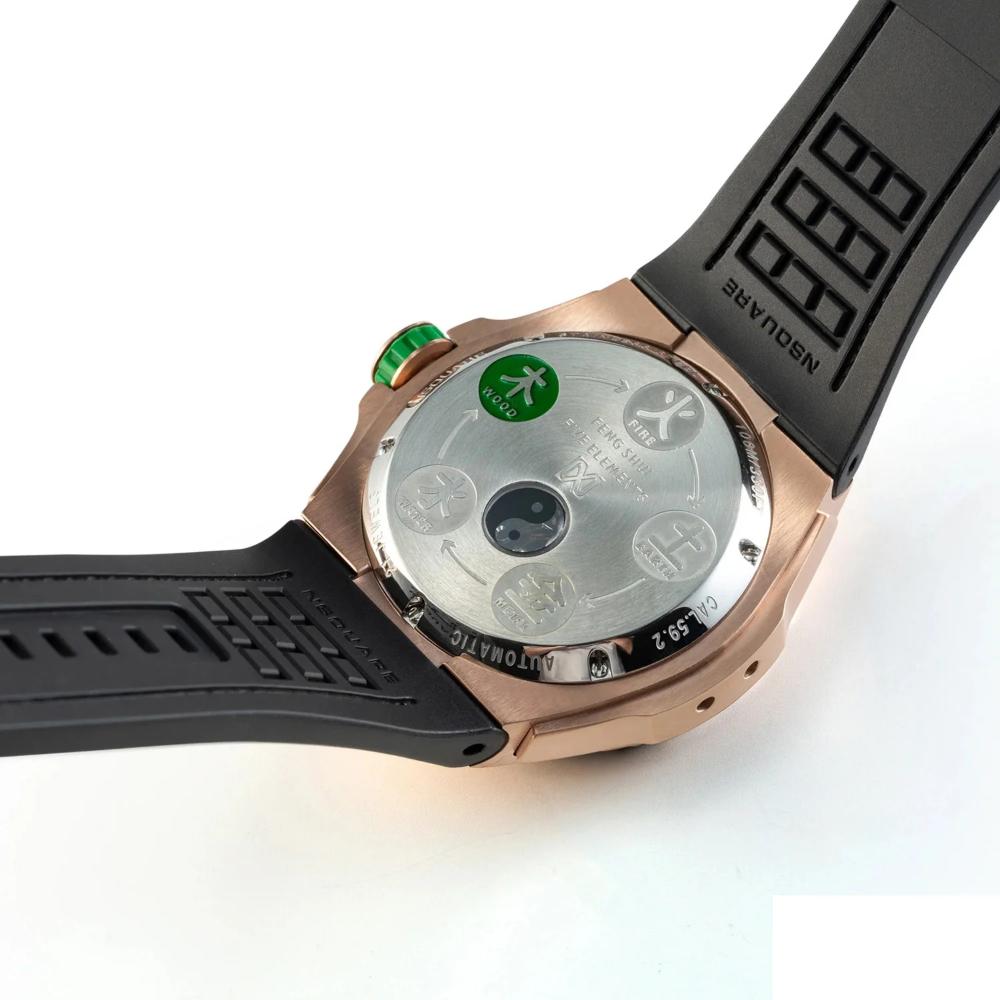 Designed with a rose gold-tone case as its foundation and adorned with a green aluminum alloy bezel, the N59.32 Wood Element Watch presents a distinctive visual effect with its green dial complemented by rose gold accents, embodying the unique essence of the wood element. The specially crafted rose gold-tone subdials not only add a touch of fashion to the watch but also serve as a symbol of good luck and success, enhancing your life in every way.