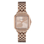 Get lost in London with the Grosvenor watch, inspired by the city’s streets, squares and iconic architecture. The latest addition to our Classics collection, the soft, rounded corners of the case are a feminine twist on a classic, angular shape. A shimmering Soft Blush sunray dial with crystal details frames our iconic North Star for that extra guiding light. The carnation gold-plated link bracelet strap and polished bezel give a luxe feel to a new classic. Cutting corners has never looked so good.