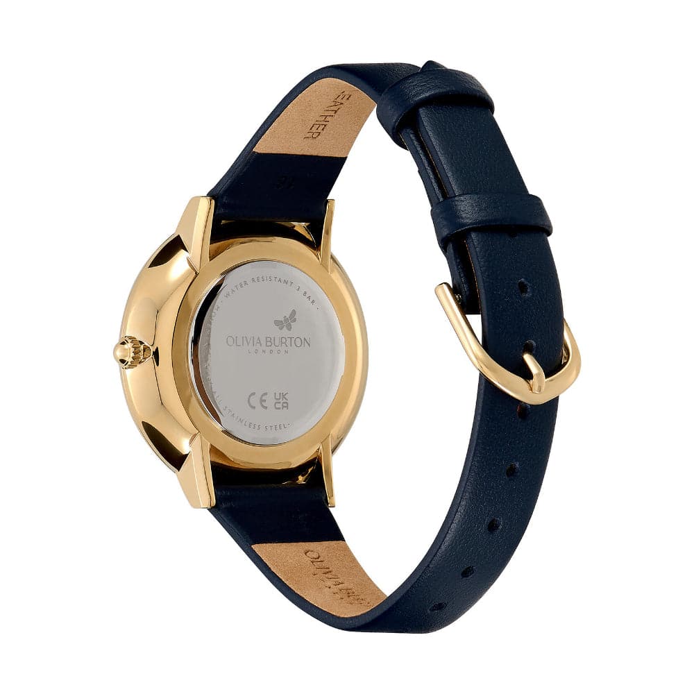 Gaze into the night sky with the Celestial Nova watch; the latest addition to our Signature collection. Inspired by clear evenings, the smooth, sculpted sapphire-colored dial is sprinkled with stardust and finished with miniature moon and multi-dimensional North Star. Feel the luxury with a Sapphire blue leather strap and gold accents for a cool, contemporary feel. A little guiding light for your wrist.