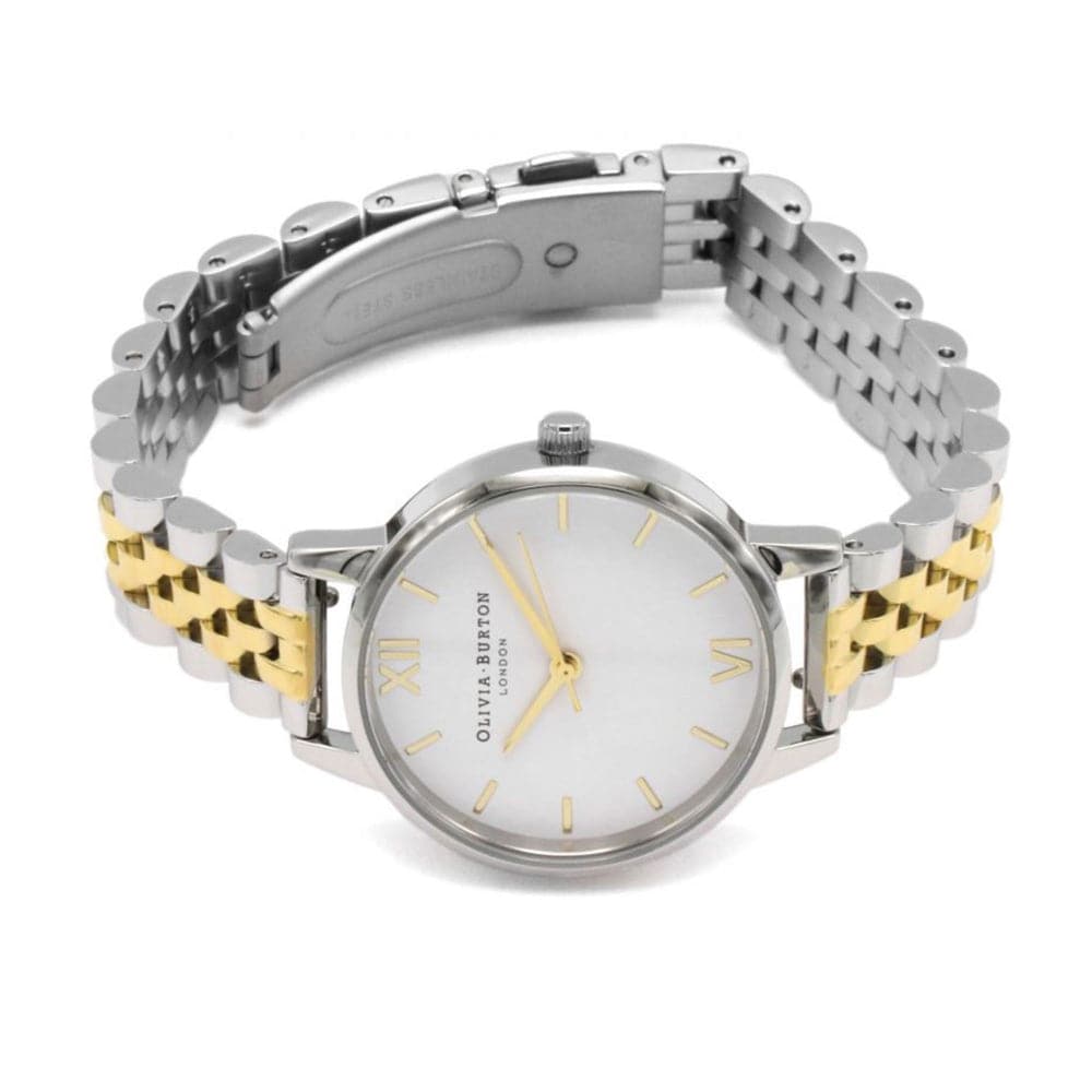 Courtesy of a mixed metal design, this versatile timepiece can be worn with endless outfits and most of your jewelry collection. The piece works a 30mm-wide white dial that's accented with gold markers, including a set of Roman numerals. Its elegant bracelet strap combines gold and silver plating. We think it's the ultimate contemporary classic.