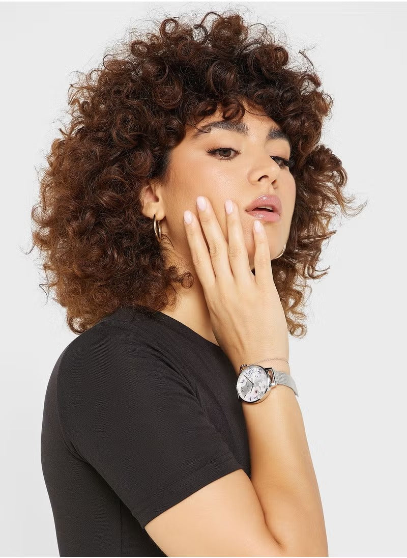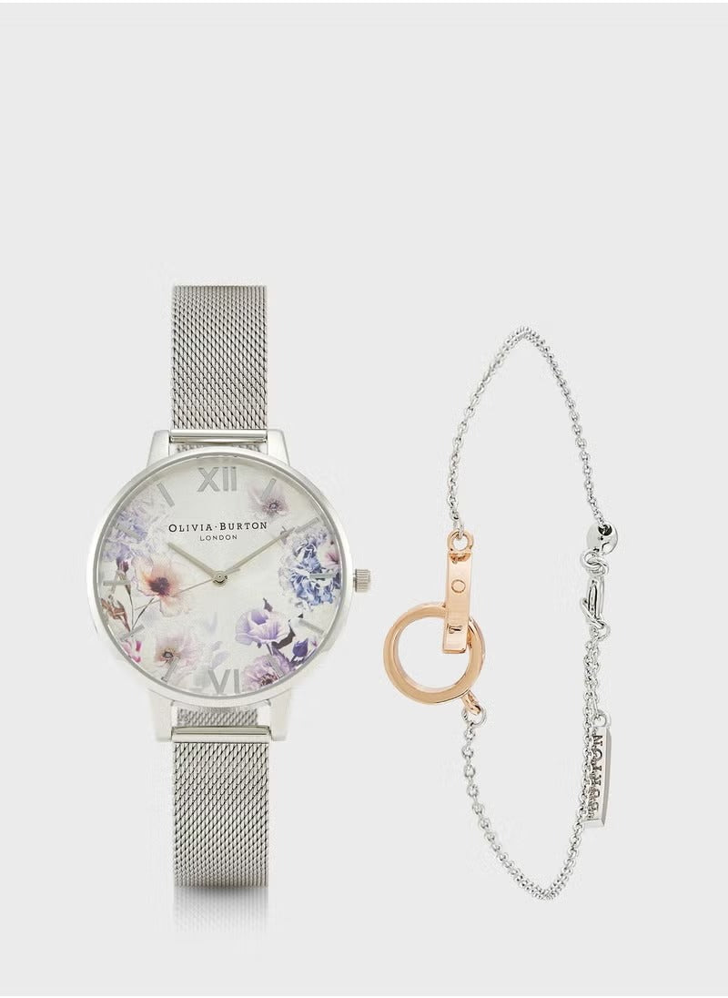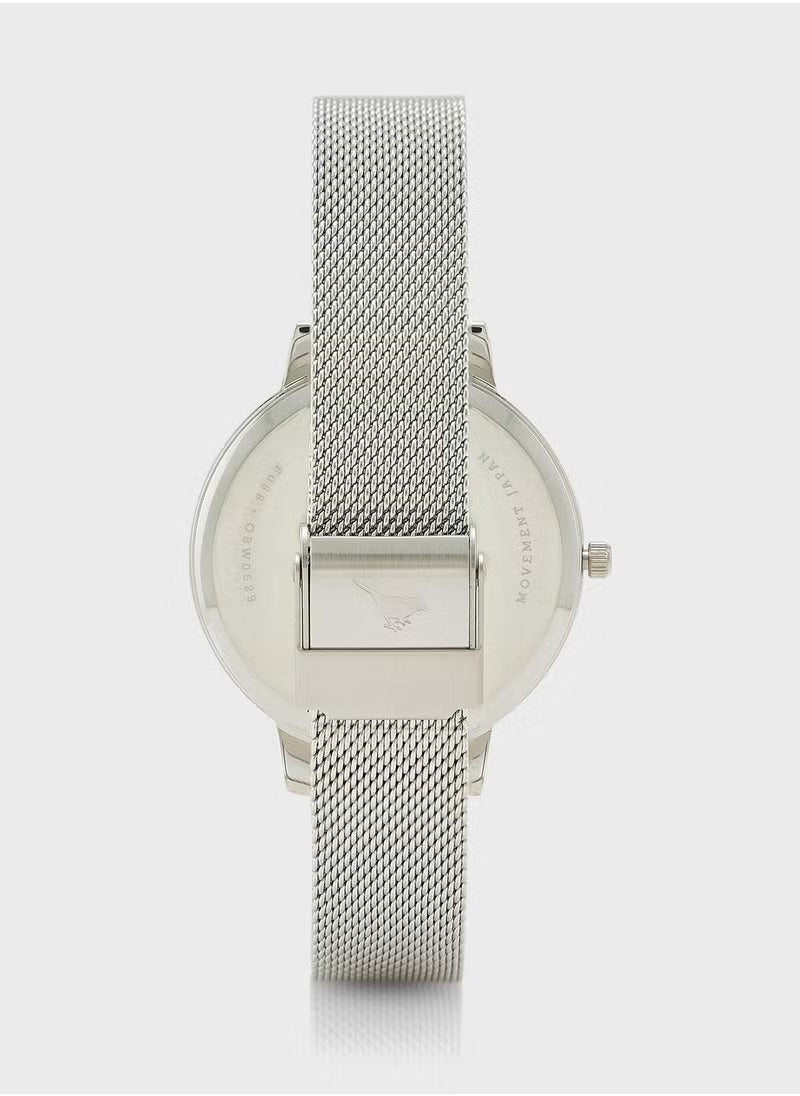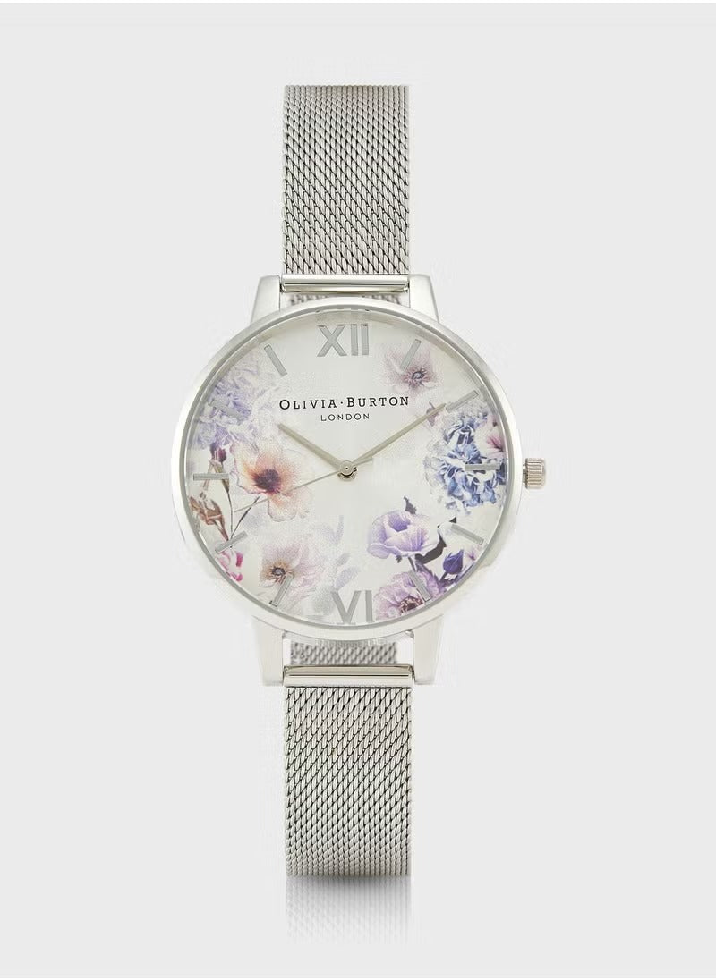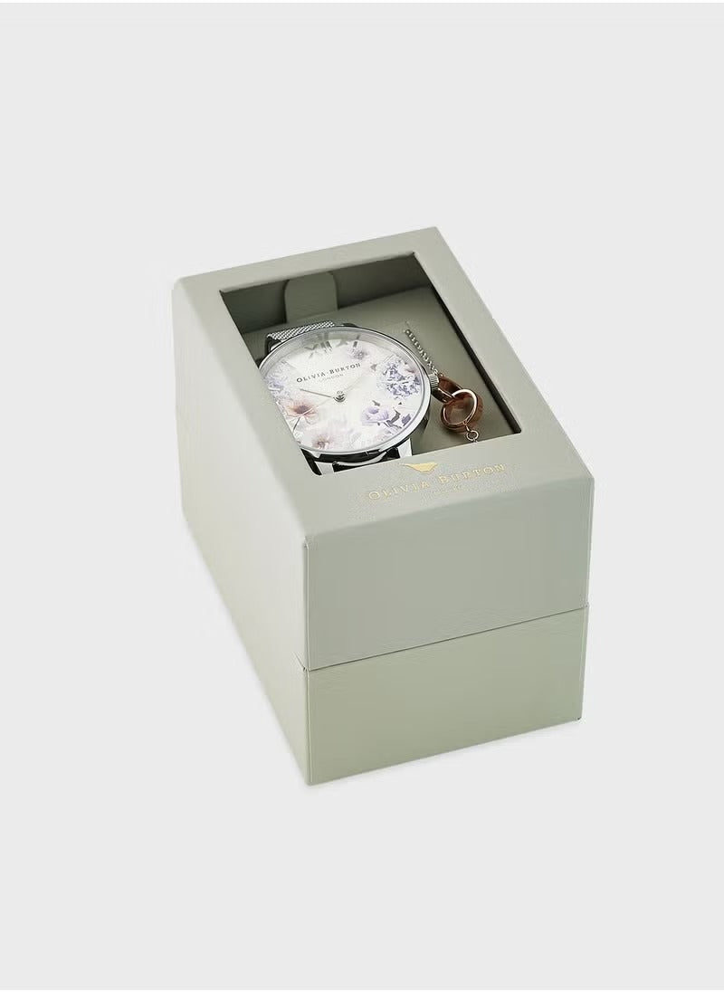 The Olivia Burton OBGSET145 Sunlight Floral Silver Steel Watch brings a touch of floral elegance to evening wear. With its stainless steel strap and analog dial, this watch makes a sophisticated yet subtle statement.