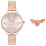 Olivia Burton, Women's 34mm rose gold-finished stainless steel case, blush dial, rose gold-finished stainless steel mesh bracelet and rose gold 3D Bee pin with gift box.
