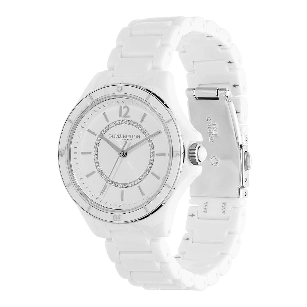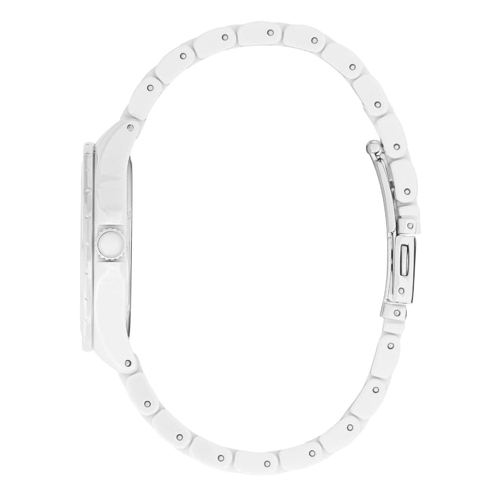 Designed for everyday wearing, this Sports Luxe watch is perfect for the on-the-go woman. An elevated take on a sporty silhouette with a white-toned 36mm dial and tonal crystal detailing. We've crafted the bracelet strap from ceramic for a scratch resistant finish. A timepiece made for living in; to the full.