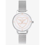Sweet as sugar, this piece is nothing like we've done before. Take a trip to the candy shop and snap up this limited edition sweet heart inspired style. A crisp white 30mm dial with delicate rose gold detailing is framed with a classic silver case and mesh strap.