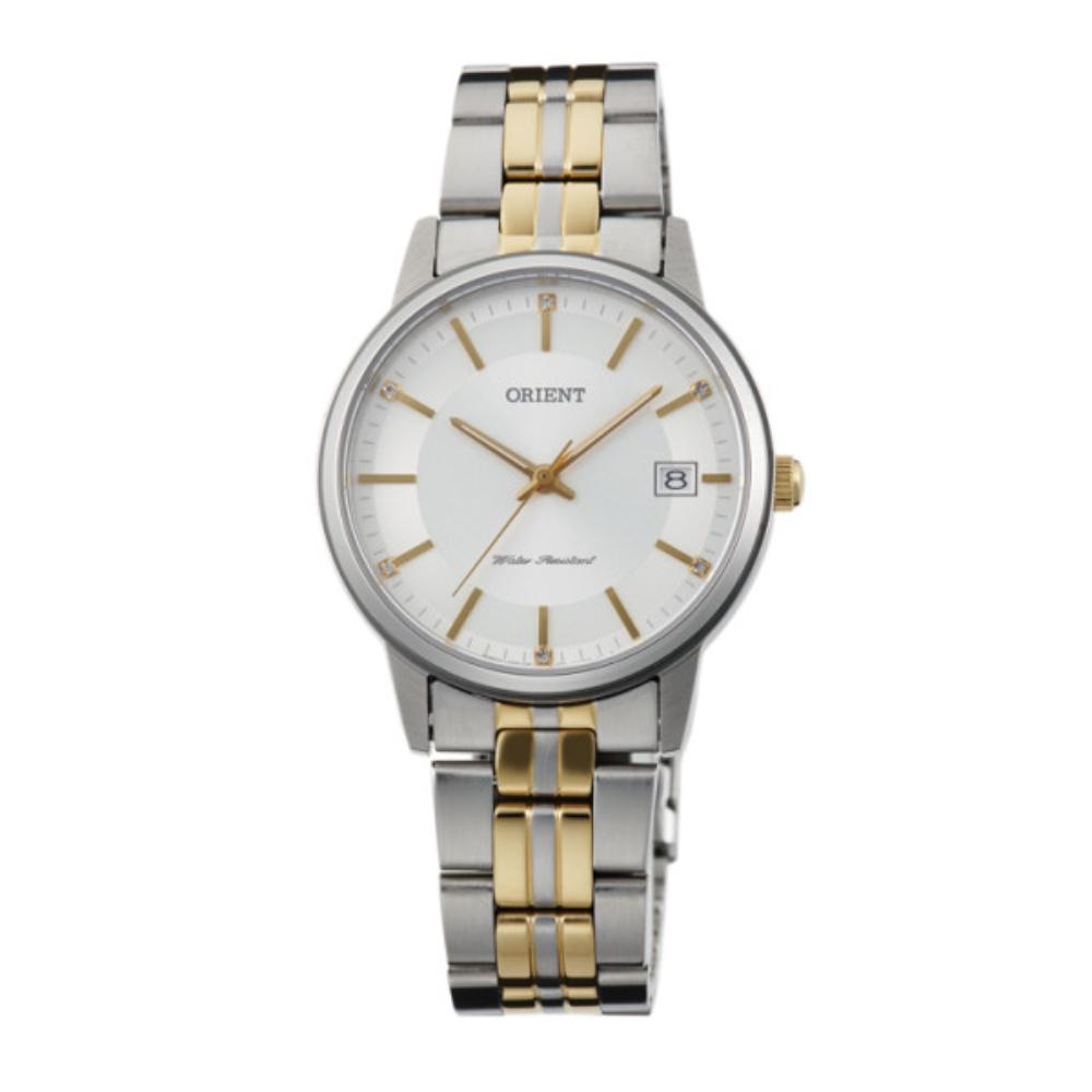 Introducing the Orient Watches FUNG7002W0, a stunning timepiece designed for women who appreciate elegance and sophistication. This watch boasts a sleek stainless steel strap that perfectly complements the 32MM case diameter, making it the perfect accessory for any occasion. The white face color is accentuated by the sapphire glass, which not only adds to its beauty but also provides durability and scratch resistance. With a water resistance of 5 ATM, this watch can withstand splashes and brief immersion in water. The push crown ensures easy adjustment of the time and date, while the quartz movement guarantees accurate timekeeping. At just 7.07mm thick, this watch is lightweight and comfortable to wear all day long.