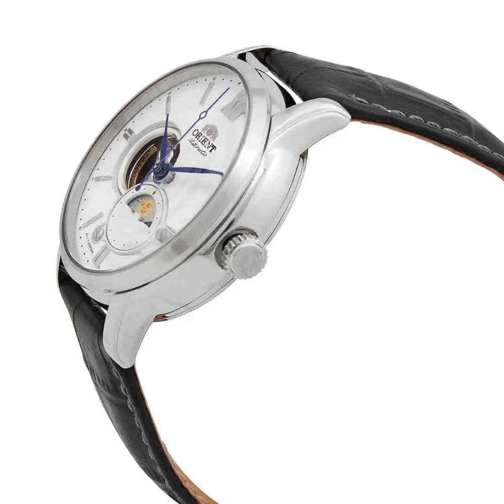 At the heart of this timepiece is an automatic movement that, as is usual for Orient watches, guarantees precise timekeeping and provides the following functions: minute, moon phase, second, hour.