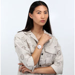 Oui&me women's time only watch from the chérie collection. Watch made of recycled steel and rose gold pvd. Watch with 34x34mm case. The water resistance is 5 atm.