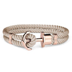 Maritime bracelets, so-called PHREPS, are available in up to seven different sizes. Paul Hewitt hazelnut nylon bracelet is fastened with rose gold anchor.