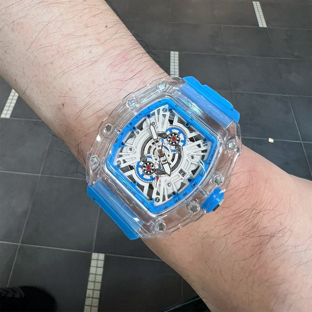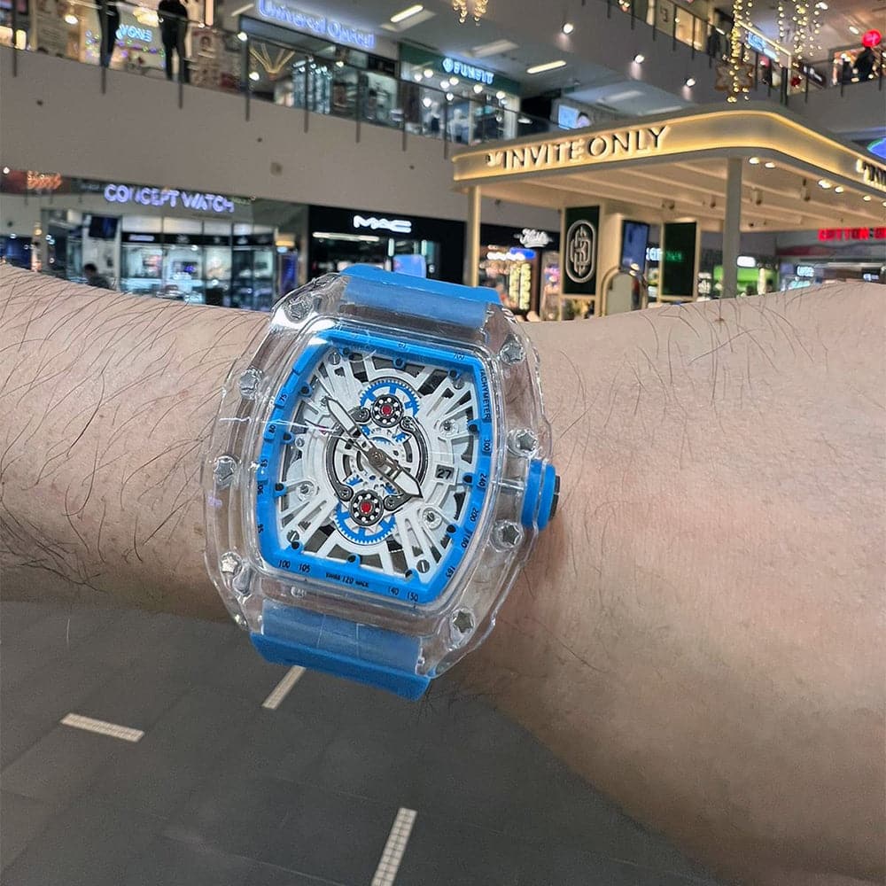 Skeleton Dial Blue Silicone Strap Men Watch H2-9178G-TR-BU