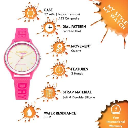 Superdry plc is a UK branded clothing company, and owner of the Superdry label. Superdry products combine vintage Americana styling with Japanese inspired graphics. Their watches carry the same style as their clothing and have exciting graphic prints on the watch straps. Superdry watches have a unique street style and suits causal or sporty wear.