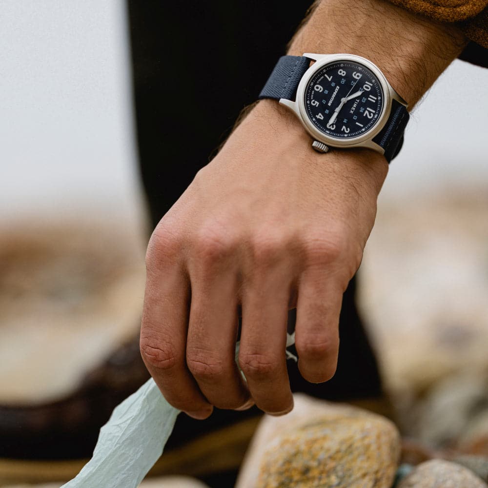 Our Expedition® watches have been an outdoor-adventure mainstay for years now, and this update brings fresh appeal to a trail-ready classic. Featuring our much-loved INDIGLO® backlight and luminescent hands on the detailed, military-inspired dial, it’s as easy to read at midnight as it is at high noon. This sturdy watch is water resistant to 50 meters with a comfortable two-piece fabric strap crafted from 100% recycled post-consumer plastic, which we’ve indicated with a leaf mark on the strap’s underside. Take it with you on your next adventure—rain or shine, mountain or valley, and everything else in between.