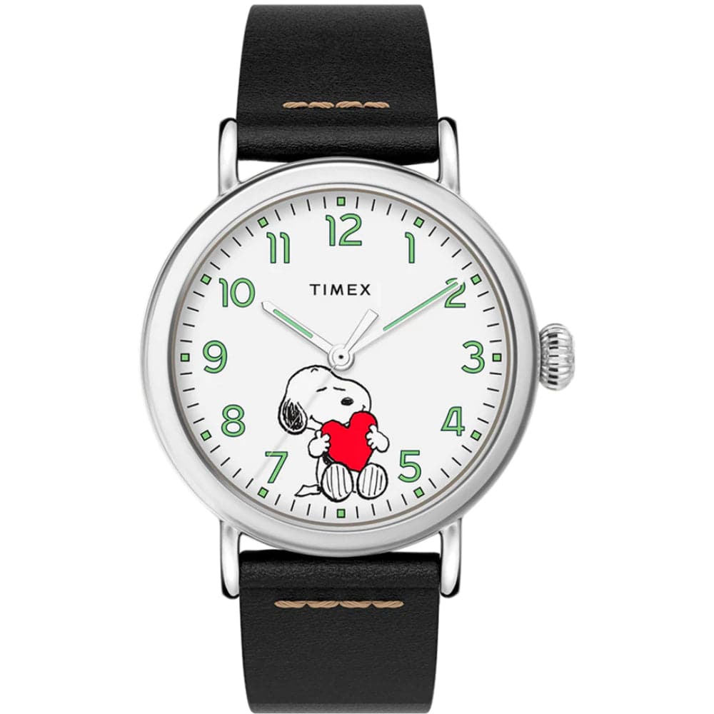 Feel the love! Our most refined everyday watch meets our favorite Peanuts pup. We updated our versatile Timex Standard—pairing the silver-tone case and black leather strap with our pal Snoopy on the dial to celebrate Valentine's Day.